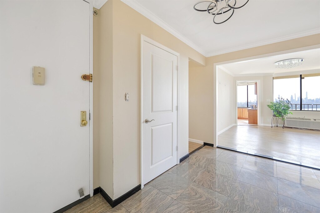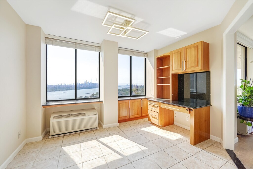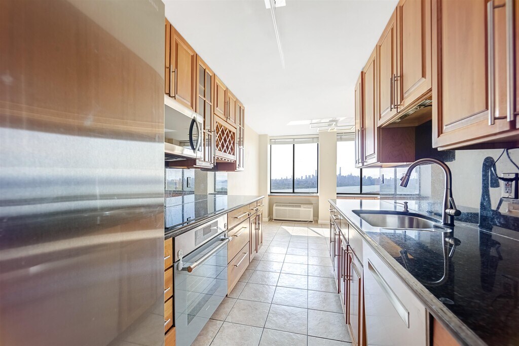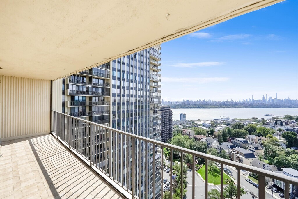 Spacious and beautifully renovated 3BR/3BA rental at 200 Winston Towers featuring breathtaking southeast views of NYC skyline and Hudson River from every room and the enclosed terrace, with hardwood floors, granite entry and countertops, cherry wood cabinets, marble baths, custom closets, eat-in kitchen, storage on floor, 1 indoor parking space, and full amenities including pool, tennis, basketball, and 24hr doorman; prime location near NYC transit, shopping, and schools.