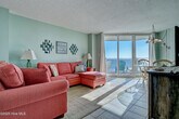 Welcome to St. Regis 3201. This cute condo with beautiful views of the beach, ocean, and beyond. It is a perfect spot for getting away from the cold winter and soaking up some sun. The St. Regis resort has everything you could need! The St. Regis is oceanfront, with a large outdoor pool, an arcade, and a workout room. There is a massage suite, sauna, playground, and outdoor sports area including bocce ball, pickleball, putt putt, and life-size checkers! The entire top floor of Building 2 is Ocean’s Edge, an amazing restaurant with panoramic views. Once you settle in you'll never want to leave. St. Regis 3201 is a 1-bedroom, 2-bathroom condo. The master bedroom has a queen-sized bed, TV, and ensuite bathroom with a step-in shower. There is a stacked washer and dryer, and a full bathroom with a bathtub and shower. The kitchen is perfect for fixing a quick meal or snack on the go. You’ll love the sunny living room with a sofa and loveseat, perfect for catching a cat nap. The cabinet that the TV sits on is a queen-sized Murphy bed. Sitting on the balcony just off the living room you’ll find the perfect place to read, doze, meditate, or do your "work at home" hours. If you are looking for a monthly stay at the beach, (or work from home for the winter) you can't beat these rates for a fully furnished/utilities-included condo near the beach, with all these amenities right on your doorstep. **Please contact Ann at Sea Coast Rentals for further information and/or to check available dates. Check out all our rentals: both furnished off-season and unfurnished long-term. **