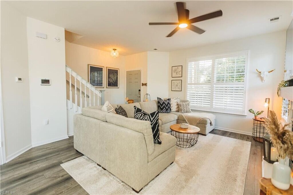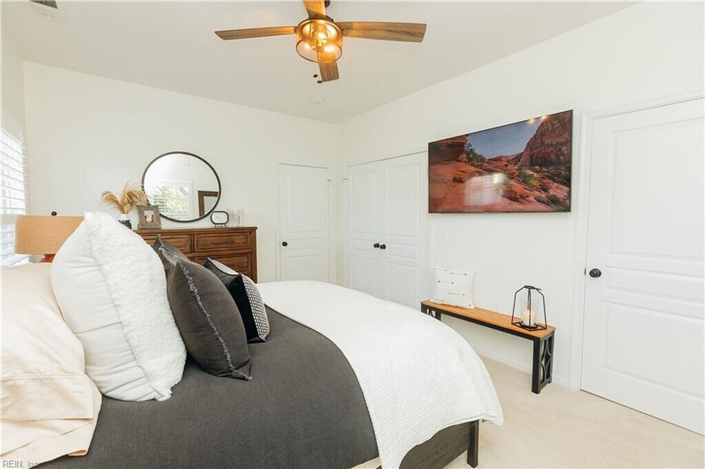 Upscale, well-maintained condo with premium upgrades! Includes water, sewer, ground maintenance, trash pick-up, and pool access. Features include large-capacity washer & dryer, freshly cleaned high-end carpet upstairs, LVP flooring downstairs and in the upstairs office, plantation shutters, under-cabinet lighting, and modern lighting & ceiling fans. Security system with window and slider sensors, plus hardwired Ring doorbell ready for setup. Backyard features professionally installed turf for low-maintenance living. TWO primary suites + bonus room offer flexible living space. Located near the pool and directly across from HomeGoods, Target, Harris Teeter, and more. Convenient to Sandbridge Beach - don’t miss this one! No smoking, no pets. Available June 1. Each adult must submit an online application & pay $55 application fee: