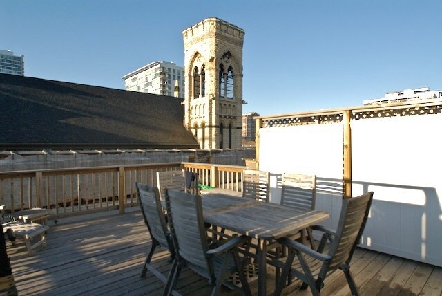 * Architecturally stunning 1bd/1.5ba duplex loft * 1200sf + 300sf private rooftop deck * Soaring 16ft concrete ceilings * Bright open floor plan * Huge windows with views of landmark church * Gorgeous hardwood floors * Maple/granite/stainless steel kitchen * Walk-in master closet * Master bath with soaking tub and double vanity * Laundry in unit * Spiral iron staircase leading to private deck * Rent includes internet and water * Tenant pays gas, electric, and cable (optional) * Garage parking avail for $200 * Building has award-winning designed fitness room * Easy access to CTA, lakefront, Wintrust DePaul Arena, Trader Joe's, Mariano's, Soldier Field, Marriott Marquis, Hyatt Regency, Northerly Island, Chinatown, etc * No dogs allowed * Available May 1 * This truly unique space will go FAST!