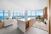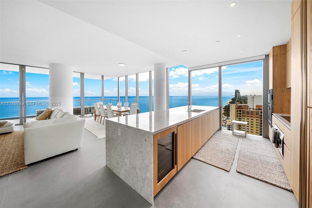 This high half floor 3 BR + den, 3 1/2 bath home clears all adjacent buildings for views from Ocean to Intracoastal. Interiors by Minotti w/Boffi kitchens & Gaggenau appliances & finished w/large slab natural stone flooring, cove lighting & pre-wired for smart home features. Primary Bedroom w/finished WIC built by B&B Italia. Floating bathtubs, Dornbracht, Duravit and Blu Bath fixtures & accessories. 2,913 SF interior space + 475 SF balconies.