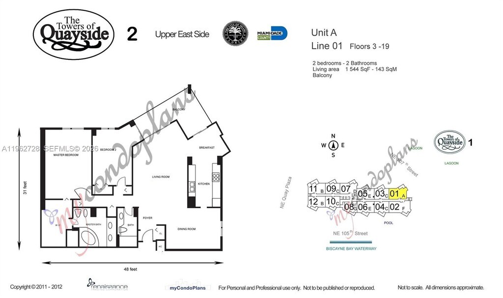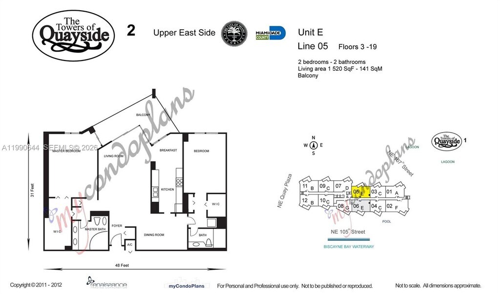 Step into a luxury RENTAL with this stunning 15th floor spacious pristine 2 bed/2 bath Condo with covered garage parking for your enjoyment. Located in the coveted Tower 2000 of The Towers of Quayside Condominiums. This elegant sky retreat boasts breathtaking views of Miami, Miami Beach, and Biscayne Bay. Thoroughly updated for a sleek and modern effortless style. The residence features creamy porcelain floors, a stylish open kitchen designed for entertaining with a french door refrigerator, black chic granite counter tops with counter for bar stools, and washer and dryer in its own closet. You will love the custom walk in closet in your spacious primary bedroom along with chic bathrooms with a bidet as well. Enjoy top-notch amenities, including multiple pools, a world-class gym, a spa, with a cafe, racketball, tennis/pickleball courts, bayfront dining, b-b-ques, a playground, a dog park, and an on-site marina. Located just minutes from major highways, downtown Miami, shopping, and dining, the arts, beaches, golf course 3 mins away, airports and more. This is luxury living at its finest. Come see this condo and make it your home sipping your favorite beverage at sunset overlooking the city and the bay on the large balcony in the sky. How fun is that! The 40 yr recertification is completed. Let's get you in to see it now. Have your agent schedule a showing and let's make this your home. May be leased for more than 1 year. MLS # A11962728