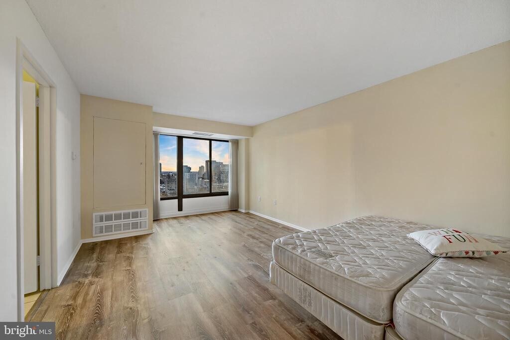 This condo has it all, COVERED PARKING, outdoor pool and beautiful courtyard, fitness center and 24 hour door person in a secure building located in the desirable neighborhood of Fairmount, close to everything you need including The Philadelphia Museum of Art, The Barnes Foundation, Kelly Drive and Boathouse Row, Whole Foods and Target as well as tons of other small boutiques and restaurants. Enter into the beautiful lobby that features a 24 hour door person as well as the in house management company for your convenience. Head up to the 9th floor and you will see this updated condo that is truly unique in the building. The open kitchen with breakfast bar is like none other at Cityview with tons of storage and great counter space as well as a built-in beverage fridge perfect for entertaining. The living room/dining room is open and features great natural light with the window wall that gives beautiful views of Fairmount. The guest room is large enough to have a bed and a desk for those who work from home as well as fantastic storage in the large closet. The large primary bedroom features an impressive walk in closet and great natural light. The beautiful bathroom has been updated and is spacious. The hall closet is perfect for linens and overflow and the coat closet in the foyer is also large enough for extra storage. Laundry is a few doors down the hall for your convenience. Water included in rent. Some photos are AI enhanced.