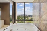 Two story penthouse on floors 39 and 40 overlooking Hermann Park with expansive views of the Houston skyline. High ceilings, open floor plan and generous room sizes. Island kitchen with breakfast room and walk-in wine storage. Formal dining room with glass display shelves, granite top serving areas with shelved cabinetry below offering great storage. Large living room with cozy library alcove with built-in shelving. Marble floors at living areas on floor 40, hardwoods at bedrooms on floor 39. Electric solar shades, designer and art lighting. Expansive primary suite with sitting room, walk-in closet, private balcony and luxurious bathroom. Walk-in laundry with full size stacked W/D. Park-side full service high rise living with 24 hour guarded entry, concierge, valet, porter, fitness center with dry sauna, party rooms and indoor racquetball court. Private resident access to hike/bike trails connecting you to Hermann Park and the medical center. Convenient access to freeways and Downtown. Rental Terms: Annual: $5,500 Per Month