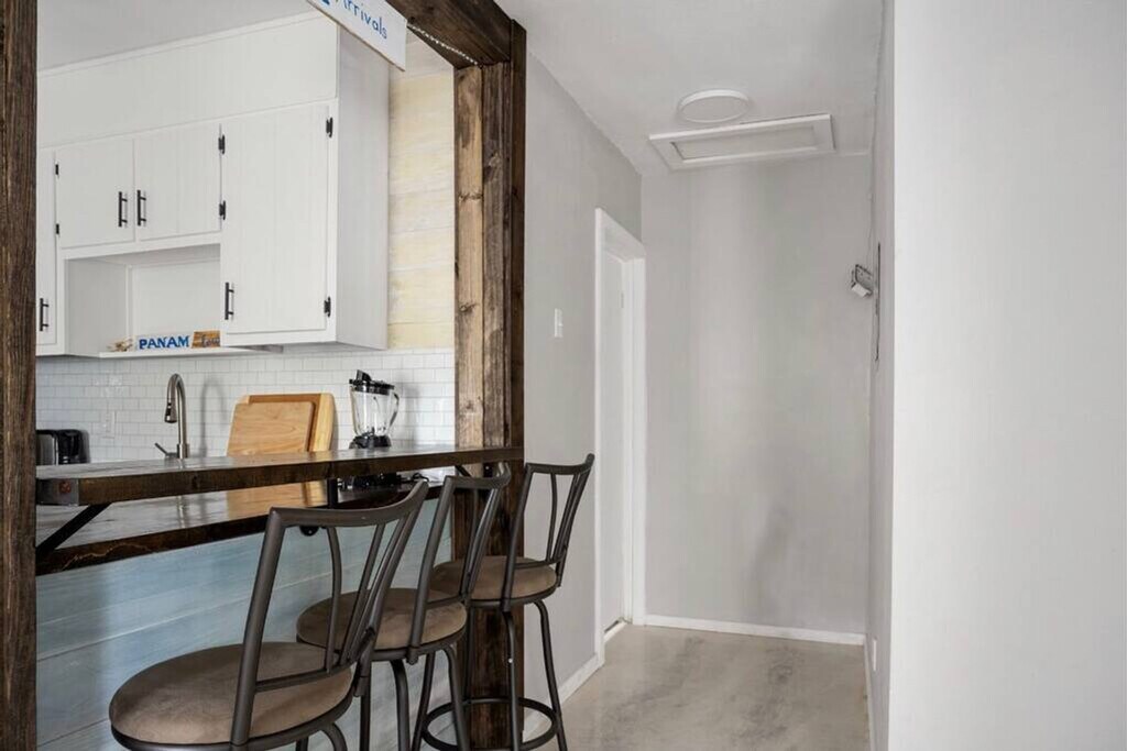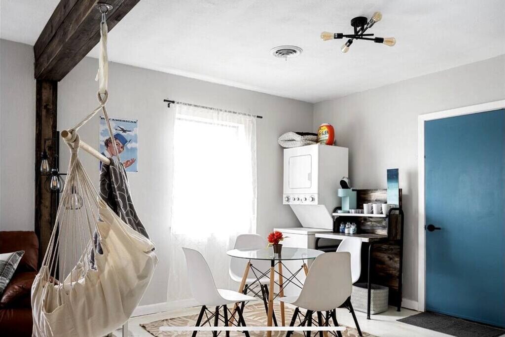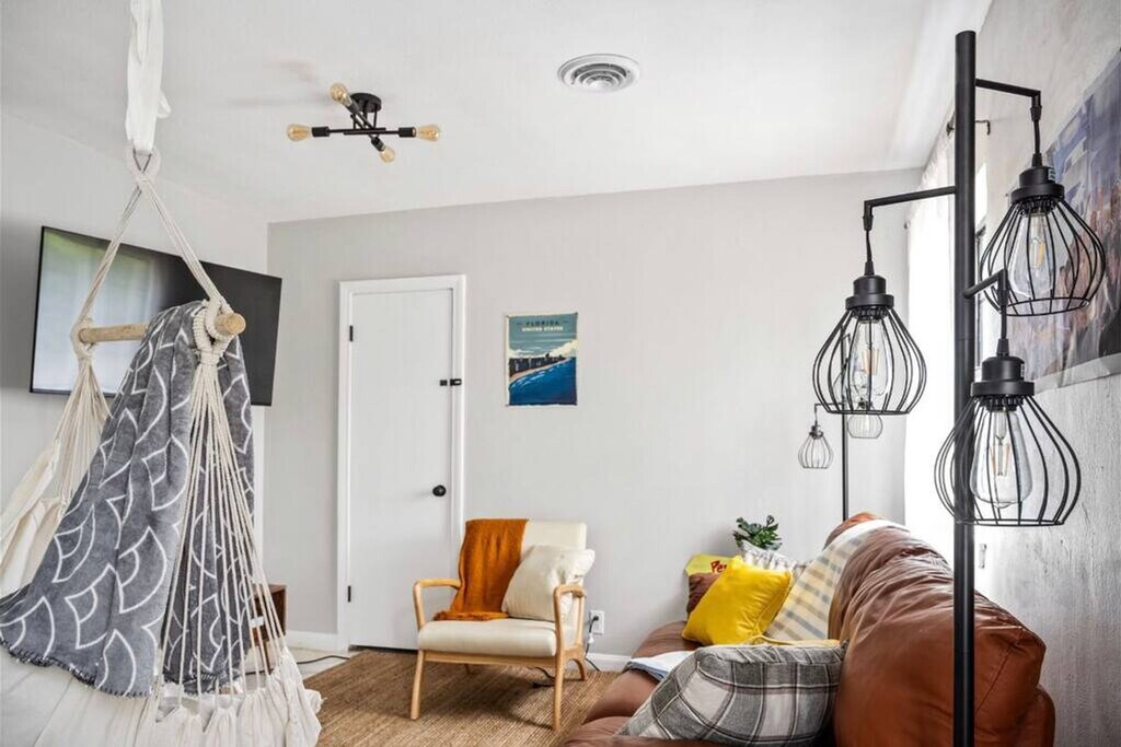 Feel at home in this 500 sq ft duplex unit in a peaceful area with large oak trees in the Myrtle Grove neighborhood of Pensacola, Florida. This small but mighty unit is equipped with all you would need for a couple or small group visiting. It has an open floor plan, a large kitchen, a fire pit, a barbecue, a smart TV, stocked kitchen, and super fast Wi-Fi. This property is dog-friendly with a fee of $99 per stay, with a maximum of 2 dogs. Additional fees are incurred for damages, not picking up after pets in the yard, or pets on furniture or beds. Pets are not allowed to be left alone unless crated. The home is tucked away from the street and centrally located for incredible beaches, shopping, and restaurants. It is an 11-minute drive to Navy Point Beach, 24 minutes to the main Pensacola Beach, 19 minutes to Naval Air Station and the National Naval Aviation Museum, 5 minutes to Pensacola Shopping Plaza, 7 minutes to Corry Field Shopping Mall, 45 minutes to Fort Pickens, and 37 minutes to Gulf Breeze Zoo. Uber and Lyft operate in the area, and downtown is very walkable. There is a small private school next door, and you may hear children playing during school hours. Quiet hours are between 10 PM and 8 AM. There is an additional fee of $250 for smoking and $200 for glitter or confetti. Pet noise must not cause a noise disturbance for neighbors. [SI]