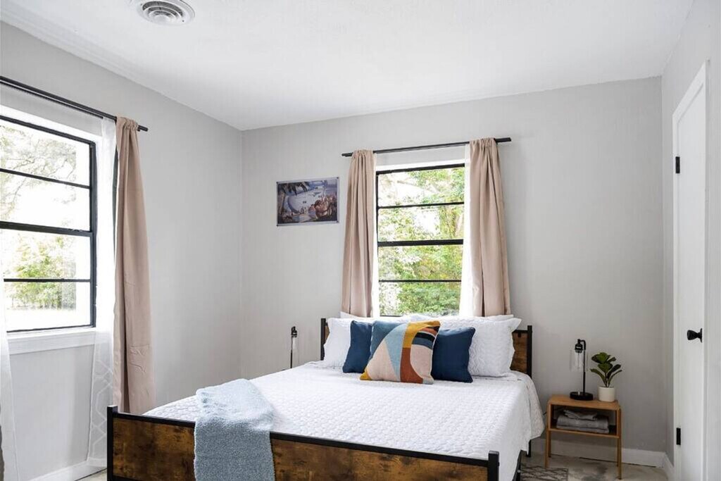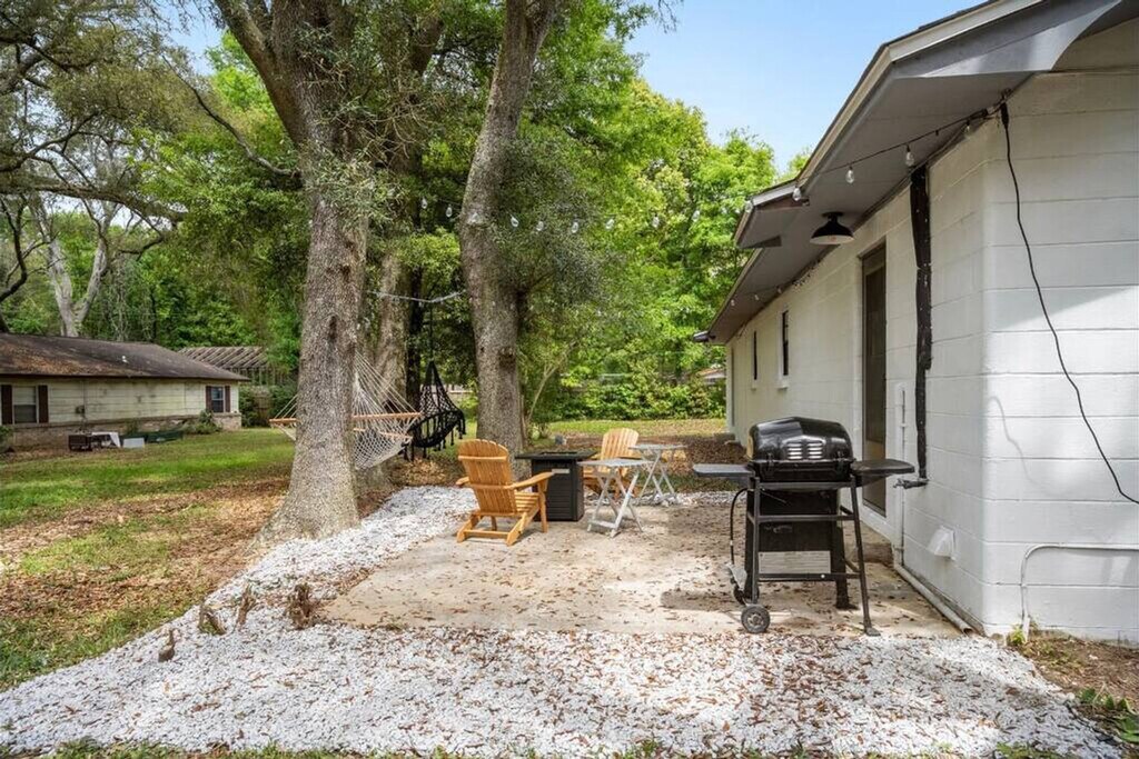 Feel at home in this tranquil home surrounded by oak trees in the Myrtle Grove neighborhood of Pensacola, Florida. This home features a fire pit, BBQ, smart TV, stocked kitchen, ultra-cozy beds, and super-fast Wi-Fi. A guidebook is provided with every booking to let you explore the beauty of Pensacola, Florida. Pets (dogs) are welcome with a fee of $99 per stay, with a maximum of 2. Additional fees are incurred for damages, not picking up after pets in the yard, or pets on furniture or beds. Pets are not allowed to be left alone unless crated. Centrally located, this home offers easy access to the beach and shopping. It's tucked away from the street in a peaceful area with large oak trees. The home is located away from the hustle and bustle of downtown but still centrally located for incredible beaches, shopping, and restaurants. It's an 11-minute drive to Navy Point Beach, 24 minutes to the main Pensacola Beach, 19 minutes to Naval Air Station and the National Naval Aviation Museum, 5 minutes to Pensacola Shopping Plaza, 7 minutes to Corry Field Shopping Mall, 45 minutes to Fort Pickens, and 37 minutes to Gulf Breeze Zoo. Pensacola is one of America's oldest and most storied cities and is located along the Gulf of Mexico with miles of white sand beaches. The city is a place full of friendly people with a small-town feel, but there is always an event or attraction to enjoy. There is a small private school next door, and you may hear children playing during school hours. Quiet hours are between 10:00 PM and 8:00 AM. Additional fees for smoking are $250 and for glitter or confetti, $200. Pet noise must not cause a noise disturbance for neighbors. Uber and Lyft operate in the area, and downtown is very walkable. [SI]
