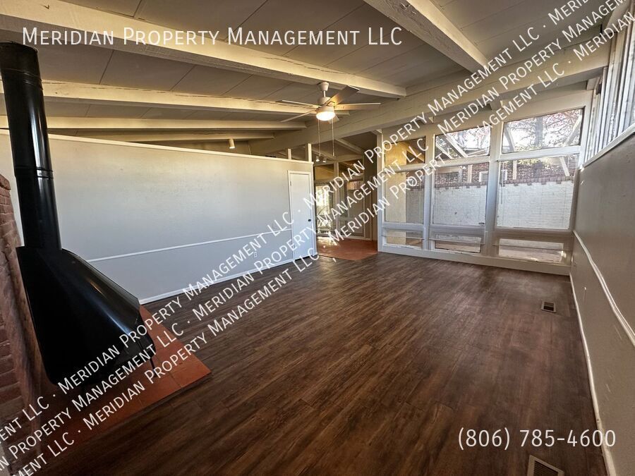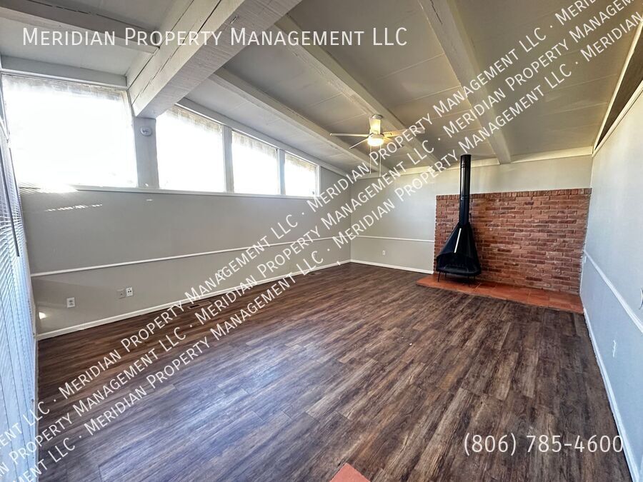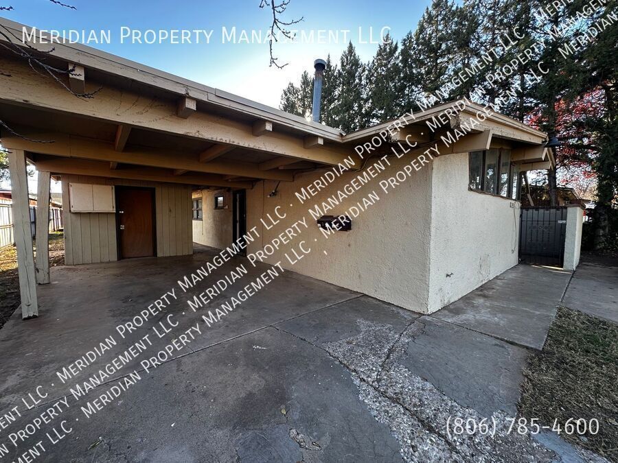 Great location less than 3 minutes from Texas Tech with plenty of space to enjoy! This retro-style home is full of character, featuring large windows and abundant natural light throughout. Inside, you’ll find 2 spacious, carpeted bedrooms and 2 full bathrooms. The kitchen comes fully equipped with appliances, while the living area showcases a vaulted ceiling and a cozy wood-burning fireplace. Additional highlights include central heating and air, an in-unit washer and dryer, a covered carport with extra storage, and a private backyard with a covered patio — perfect for both relaxing and entertaining.
