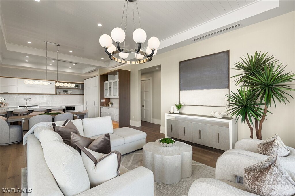 RENTED Jan-March 2026 - Available April 2026 at $12,500 - Welcome to the ultimate vacation escape,at the prestigious Mark on 8th,where luxury and convenience meet. This downtown fully furnished coastal contemporary condo offers a thoughtfully designed modern living space while boasting three beautifully appointed bedrooms and four elegant baths. An open-concept washed in natural light,whether preparing a meal in the gourmet chef's kitchen or taking in the sunset from the gorgeous lanai,this home is sure to impress. However,what makes this home so special is its proximity to everything Naples has to offer. Parades,festivals,events,concerts,markets,you can feel the pulse of the city. Imagine stepping out your door minutes from 5th Avenue’s shops and restaurants to the white sand beaches of the gulf. The Mark on 8th provides an array of amenities to elevate your lifestyle. Enjoy the golf simulator,relax by the pool and spa,or stay fit in the state-of-the-art gym and sauna. With two covered parking spaces,an outdoor grilling area,and a community fire pit,luxury living at its finest. This will be a vacation you will never forget.