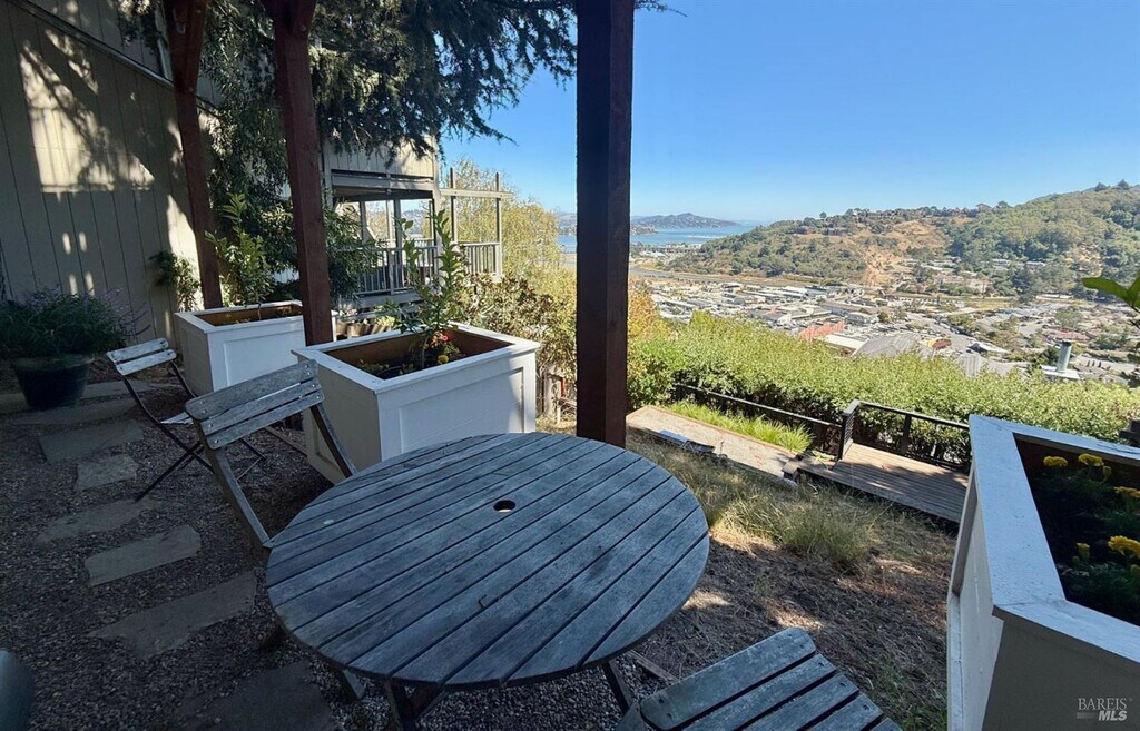 Top-to-bottom renovation: Private 2BD/2BA unit in a 2-unit building offers 1,400+ sq. ft. of modern living with sweeping views of Richardson Bay, Sausalito Marina, and the Bay Bridge. Perched above Tam Junction, the home blends indoor-outdoor Mill Valley living with designer finishes, a chef's kitchen, and expansive decks. Just minutes to local favorites (Hook Fish, Pizza Hacker, Good Earth, Whole Foods) and outdoor escapes (Stinson Beach, Muir Woods, Mt. Tam, Sausalito), with the Golden Gate Bridge only 7 minutes away. Fabulous views, Large Deck and Quick Commute. Gourmet Chef's Kitchen- * Marble countertops & backsplash * High-end stainless steel appliances, including gas range * Bright eating area framed by large picture windows * Opens seamlessly to the living room Expansive Living Room- * Granite fireplace * Maple hardwood floors * Wall of glass opening to a spectacular 48-foot deck * Perfect for entertaining or relaxing with panoramic views Bedrooms & Baths- * Two generously sized bedrooms with organic wool carpeting * Primary Bath: Single vanity with storage + shower over tub * Second Bath: Sleek standing shower + single vanity with storage * Energy-efficient LED lighting throughout Outdoor Living & Amenities- * Lawn, two garden areas MLS#325093957