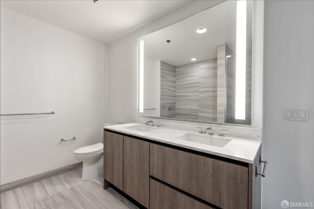 Welcome to this bright and luxurious signature corner home at LUMINA, which offers a well-designed layout with bridge and city views from every angle and a private balcony off the living room. Residence 16E showcases SieMatic cabinetry, Gaggenau kitchen appliances, motorized shades in the living room, hardwood floors throughout, and an in-unit Bosch washer/dryer. The primary bedroom has gorgeous views, manual shades, a large walk-in closet with customized Elfa organizers, a large en-suite bathroom with dual sinks, a separate shower, and a soaking tub. LUMINA offers residents world-class amenities such as a full-length saline lap pool, a 7,000 sq. ft. state-of-the-art gym, landscaped outdoor spaces, rooftop, valet parking, and 24-hour door service front desk service. On the ground floor of LUMINA, Woodlands Market offers organic and natural products from local suppliers, prepared foods, and a coffee bar just a short walk from Embarcadero, Oracle Park, and the Ferry Building. *Photos of a higher floor unit with the same floor plan* MLS # 426097729