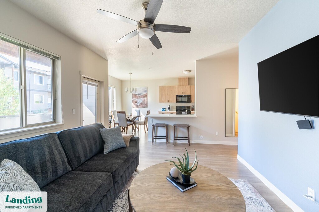 Landing offers flexible lease terms from weeks to months. Please always visit our website or contact us for the latest pricing & availability. Stay longer, save more: 6-Month Minimum base rent: starts at $2570/mo 12-Month Minimum base rent: starts at $2169/mo Landing offers flexible leases across a network of over 35,000 fully-furnished apartments throughout 375+ cities so you can rent on your terms, practically anywhere, and avoid the hassle of paying deposits or application fees. Visit to learn about all the benefits of a Landing membership, see our competitive up-to-date pricing, explore available apartments, take virtual tours, and make reservations online without jumping through traditional rental hoops. Landing's apartments at Cascade Place are designed for comfortable, easy living, with the ability to stay as long as you like. Experience living with Landing Every apartment is outfitted with all the modern essentials including: custom-designed furnishings, a fully-equipped kitchen with deluxe stainless steel appliances, a gourmet coffee maker, premium linens, Smart TVs, and incredibly fast, reliable internet for working from home. When you live with Landing, you'll enjoy a hassle-free experience with the added benefit of 24/7 access to our dedicated member experience team. Some of the nitty-gritty: a background check and proof of income are required; we're completely smoke-free; bundled utility packages and pricing vary based on length of stay; pet-friendly options available; listed price reflects a 12-month minimum stay.
