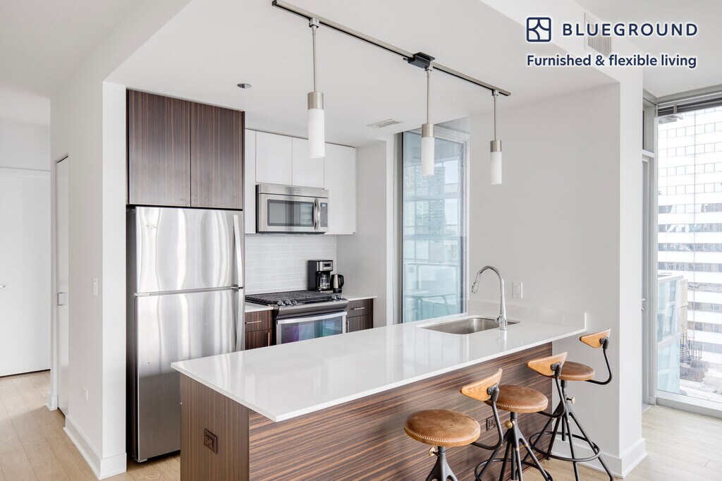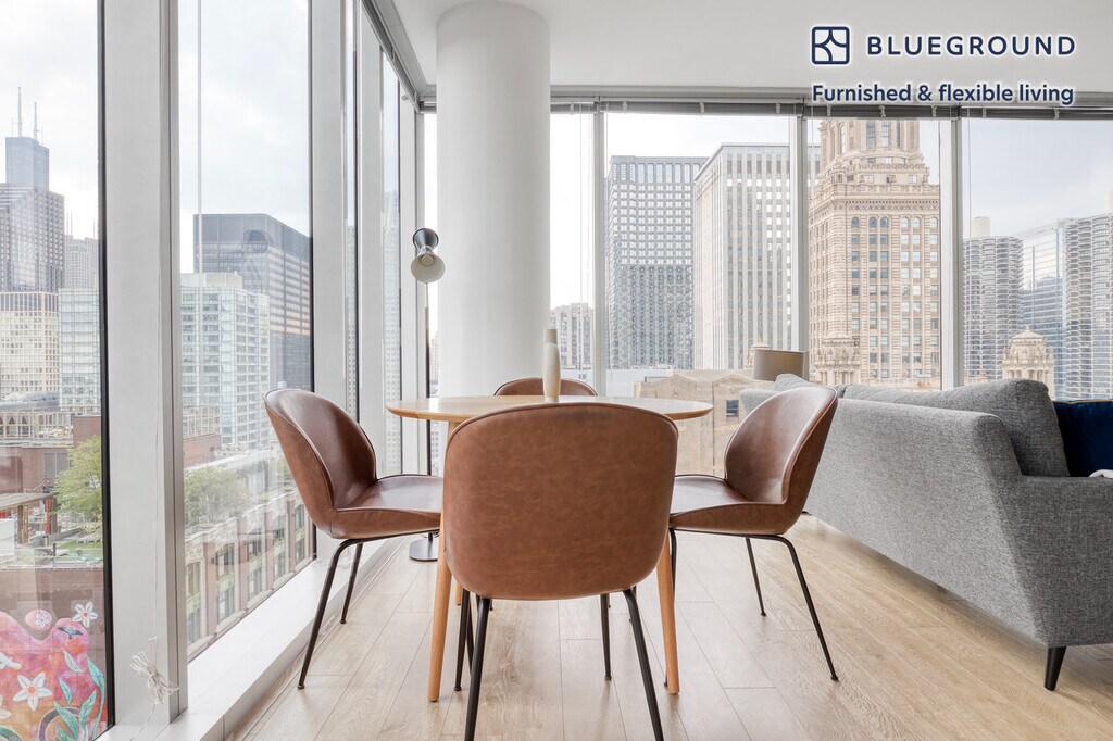 Show up and start living from day one in Chicago with this stylish two bedroom Blueground apartment. You’ll love coming home to this thoughtfully furnished, beautifully designed, and fully equipped The Loop home with stunning balcony views over the city. (ID #CHI960) The advertised rate of $2,690/month is the lowest available price, based on a 1 month(s) and 25 day(s) stay with a move-in date of January 25, 2026. If you’re looking for a 1-year stay, the rate is $4,580/month. Rates vary depending on the duration of stay, season, and other parameters. For exact pricing and additional pricing components, please visit our website and enter your desired move-in and move-out dates. The rate is applicable when billed upfront; it can be higher if billed in multiple payments. Brokers are welcome to reach out. Were you looking for an unfurnished lease? Try Blueground instead and upgrade from unfurnished to furnished living: - Furnished at rates comparable to unfurnished - No setup or furniture costs - save thousands - Move-in ready - save time, just bring your suitcase Designed with you in mind Thoughtfully designed with bespoke finishes, modern furnishings, and a fully equipped kitchen, you’ll enjoy that “I’m home” feeling with this Blueground apartment. Whether you’re lounging in your cozy living room streaming the latest and greatest entertainment on the smart TV or premium wireless speaker, or getting some well-earned rest on the superior quality mattress with luxury linens, you’ll fall in love with everything this The Loop apartment has to offer. This apartment also offers in-apartment laundry. Sleeping arrangements King Bed, 70.8in/180cm Queen Bed, 63in/160cm Amenities Building amenities unique to this two bedroom apartment include an on-site: - BBQ Area - Doorman - Dryer - Elevator - Game room - Swimming pool - Washing machine - Lounge - Pets allowed Arrival and ongoing support The entire apartment is yours to enjoy! Throughout your stay, you’ll have access to our Client Experience team through the Blueground App. You can schedule additional cleanings, submit maintenance requests, and view our neighborhood recommendations with just a few taps. We’ll share all details upon confirmation of your stay. Ideally Located This furnished rental is situated in the most dynamic and convenient place to live in Chicago, The Loop. With its endless shopping, fine dining, stunning park, river and lake views, and entertainment opportunities, everything is possible at a moment’s notice. The area is a cultural getaway for professionals and students, who can combine work with pleasure. Discover landmark buildings like the Willis Tower and The Art Institute of Chicago. Millenium Park, near Lake Michigan, is always worth a visit. The Loop is within reach of accessible transportation, offering non-stop public transit, buses, and taxis. Union Station is approximately a 10 minute train ride. Other things to note Building amenities may have an extra cost. This Blueground apartment has flexible lease options, allowing you to book it for one month, a year, or more. Pets are welcome, though weight limits and breed restrictions apply and may incur fees. We take great pride in ensuring every photo displayed is shot in our own units with our actual furnishings. That said, we regularly refresh our decor and furniture arrangement, which may differ from what’s pictured. Also note - This apartment's central location means it can be noisy at times - This apartment is located near a railway, so expect to hear moderate noise when trains pass - The apartment is in a busy location, so it will be noisy when your windows are open [SI]