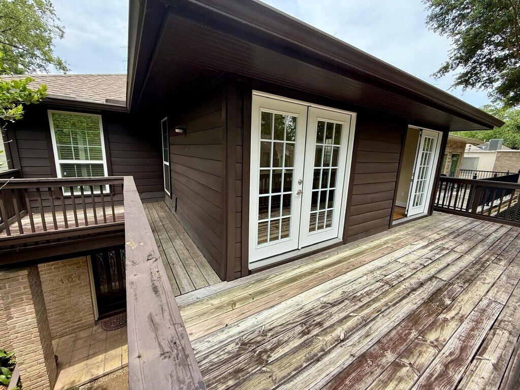 Beautiful Home. Tastefully updated ( 2020) Memorial home,is close to City Centre while feeling secluded among the trees. Located in highly sought after Woodstone community which this unit does not have a common walls unlike some of the other units. This gives additional privacy. Plantation shutters and wood floors throughout. Primary bedroom boasts fabulous wrap-around deck,accessed through wall of french-doors. Two additional bedrooms upstairs share adjoining updated bathroom. Easy parking right by the front door,convenient location. Gated community with guard station at entrance,pool,tennis courts and clubhouse. Highly rated Frostwood Elementary,Memorial Middle and Memorial High School (Tenant to verify). Never flooded per owner. MLS# 29055406