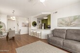 Now available for rent! This beautiful condo offers an open layout with perfectly flowing living areas designed for both comfort. Enjoy peace of mind with fire sprinklers throughout,while wood-look floors & neutral paint create a warm,modern ambiance. A versatile open den area provides the perfect space for a home office or reading nook. The kitchen features quartz counters,SS appliances,stylish backsplash,modern cabinetry,pantry,& a convenient breakfast bar. The main bedroom includes a private bathroom & walk-in closet. The cozy balcony boasts storage room & beautiful mountain views. Additional highlights include a 1-car garage & carport space. This gated community has a sparkling pool,spa,fitness center,movie theater,etc. Act now!