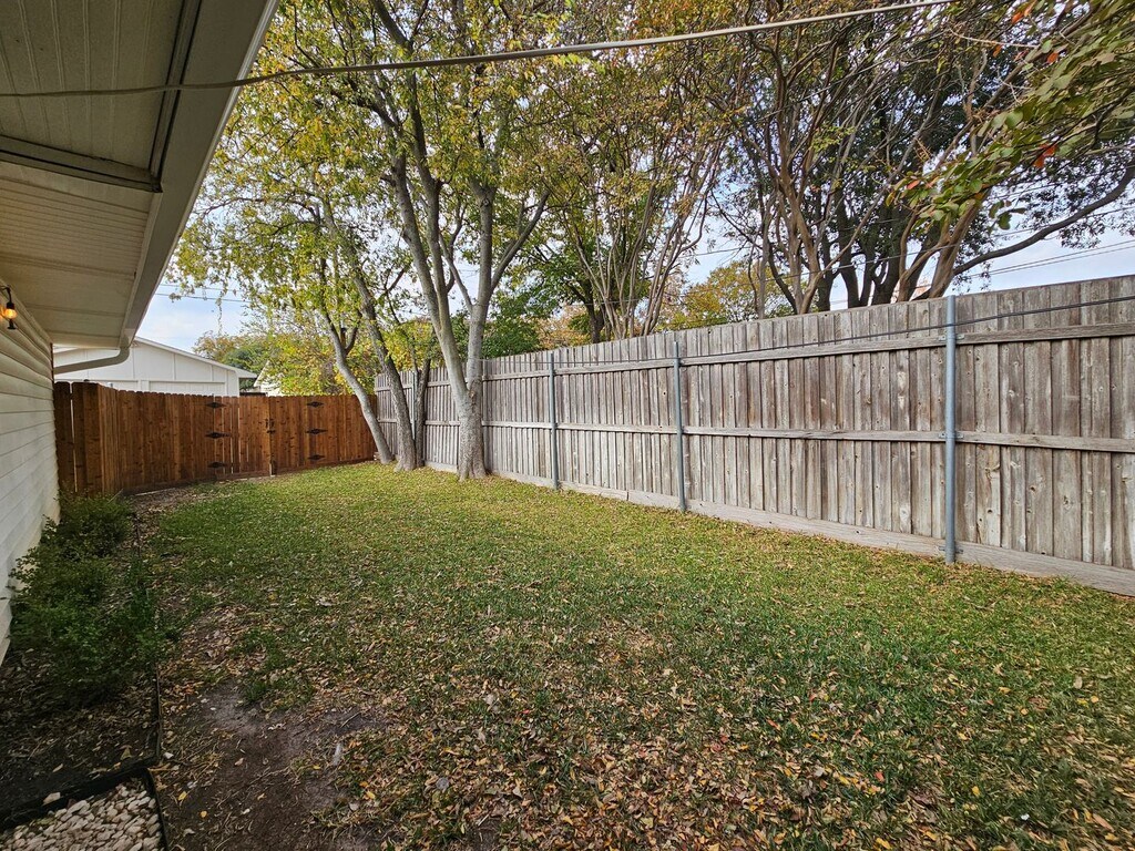 Welcome to this 3-bedroom, 2-bathroom retreat, where warmth and style come together to create your dream home. As you step inside, you'll be greeted by the cozy ambiance of a wood-burning fireplace, perfectly complemented by laminate flooring that flows seamlessly throughout the house. Ceiling fans ensure a refreshing breeze on warm days, while the spacious backyard—enclosed by a sturdy wood fence—offers a serene escape for relaxation and entertainment. The expansive covered back porch, complete with a ceiling fan, is the ideal spot to unwind and enjoy the outdoors. The galley-style kitchen is designed for culinary ease, boasting ample countertop space that makes meal preparation a delight. Additional highlights include a detached 2-car garage, updated light fixtures, and modern faucets, all combining to create a home that is both functional and stylish. Strategically located near a vibrant array of dining, shopping, and entertainment options, this home also offers proximity to the University of Texas at Dallas, making it perfect for students, professionals, and families alike. Whether you're seeking a peaceful retreat or an active lifestyle, this property offers the best of both worlds. Don't miss this incredible opportunity to own a piece of paradise. Schedule a viewing today and discover why this home is the perfect place to call your own!