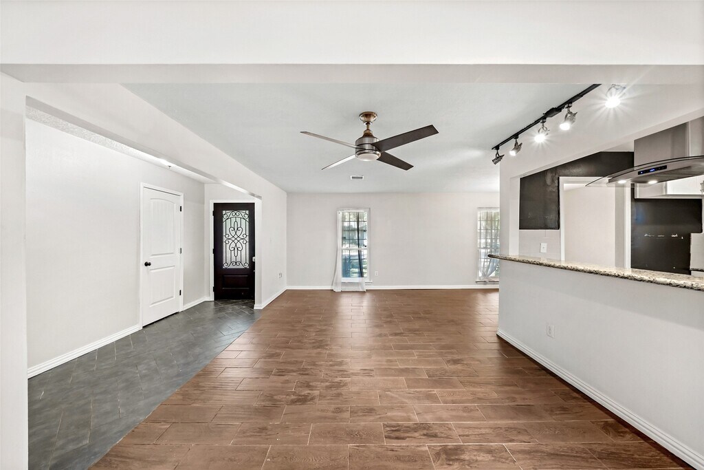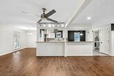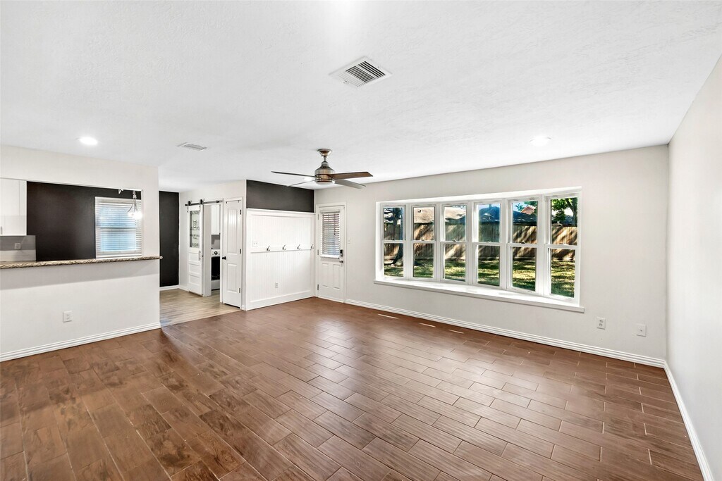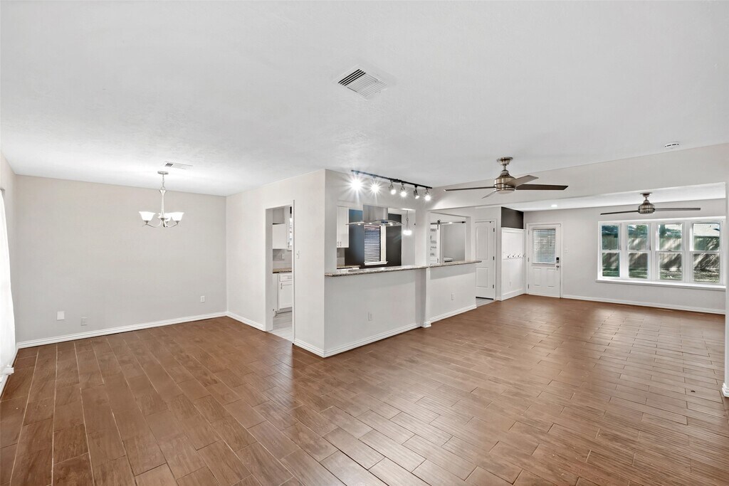 This stunning one-story home in Clear Lake City's desirable neighborhood features an open floor plan with 4 spacious bedrooms and 2 baths. The inviting living area has ceramic hardwood floors, neutral tones, and tasteful finishes. A gourmet kitchen boasts granite countertops, gas cooktop, and stainless steel appliances for a home chef. The family room offers an open concept and natural lighting for sophistication, while a versatile front entry room fits multipurpose needs. Enjoy a large backyard and patio alongside a primary suite with a private en-suite bathroom. The guest bathroom has granite counters and tiled tub/shower combo. House comes with Water Softener so clear water comes from the tap. Benefit from nearby amenities like hike/bike trails, tennis courts, swimming pool, fitness center, shopping hubs, dining venues, and I-45 access within the thriving community. Pets welcome with a $500 deposit fee.