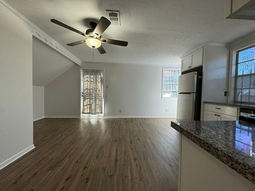 The kitchen features a walk in pantry, single basin sink, range, dishwasher, and refrigerator as well as adjoining dining area. Every bedroom has abundant closet space with two bedrooms boasting walking closets. The living room (could be third bedroom) has a built in desk area, cabinets, and walk in storage. Stackable washer and dryer provided. Utilities billed in addition to rent $300 per month not including cable/internet. Balcony patio usage for this unit only - Fenced yard not included in lease of this unit. Gross Income must be 3 times the monthly rent. No evictions or criminal background. Will check credit. Owner makes final decision to lease. Deposit on approval is one month's rent. Tenants will maintain renters insurance. Pets permitted with owner approval - $350 per pet non-refundable pet deposit. Submit photos of pet with breed, size, age, and vaccine records with application.