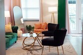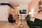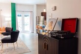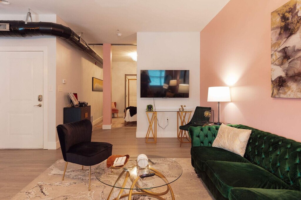 Welcome to this 1-bedroom, 1-bathroom apartment in downtown Johnson City, where you'll feel at home. This apartment overlooks a breezy courtyard. This bright and airy apartment features modern furnishings and a cozy living space. Pets are welcome with a flat fee of $100 to cover the extra cleaning costs. A maximum of two pets are allowed, but no cats or birds. Located in the heart of downtown JC, this apartment is steps away from restaurants, breweries, parks, and a new theatre. You'll have easy access to the farmers' market and Founders Park. There is even a restaurant under the complex for easy access to brunch, dinner, and events! Since this apartment is in the heart of downtown, you might hear some noise from trains and nightlife. Quiet hours are observed between 10 pm and 8 am. Smoking and vaping are not permitted inside the property and will incur a $200 per day fee. If your party receives a lease violation you will receive a $500 penalty. If there is evidence of pet hair found on furniture there will be an additional $75 deep clean fee. Guests are responsible for any stains that are not easily removable and may be charged for cleaning costs or replacement of damaged items. [SI]