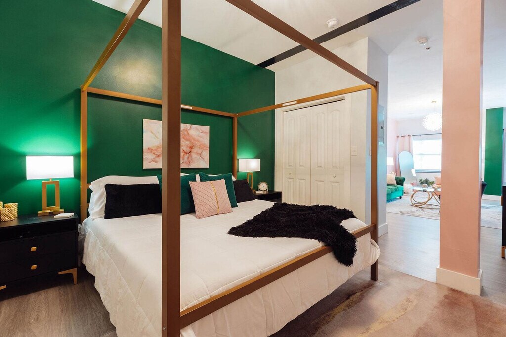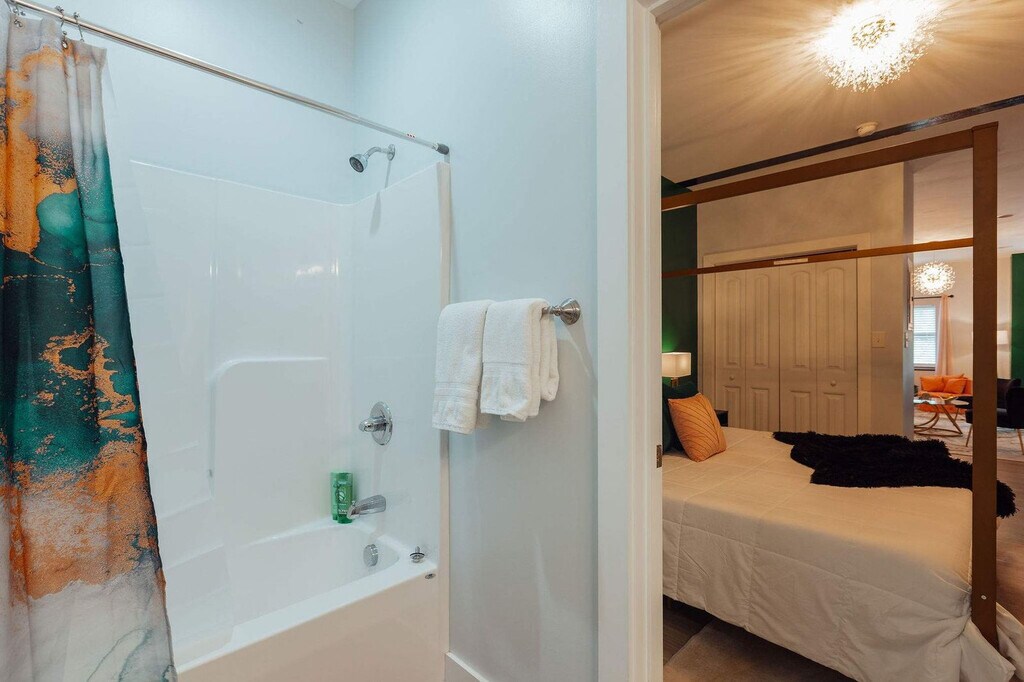 Welcome to this downtown loft in Johnson City, TN, where you can feel at home. This studio loft features a king-size bed in a revitalized downtown location. This studio loft offers a cozy atmosphere with a Smart TV for entertainment and a fully stocked kitchen for home-cooked meals. The bathroom is equipped with towels and hygiene products. Free laundry room access is available across the unit. Located in the heart of downtown Johnson City, this apartment is within walking distance of top local eateries, attractions, restaurants, parks, bakeries, cafes, shops, and breweries. You'll be in the middle of the action, which means you might hear some noise from trains and nightlife. There is a local Italian restaurant right below this apartment and a local boutique grocery store right across the street. Quiet hours are observed between 10 pm and 8 am. Smoking and vaping are not permitted inside the property and this violation will incur a $200 per day fee. Pets are not allowed in this apartment. [SI]