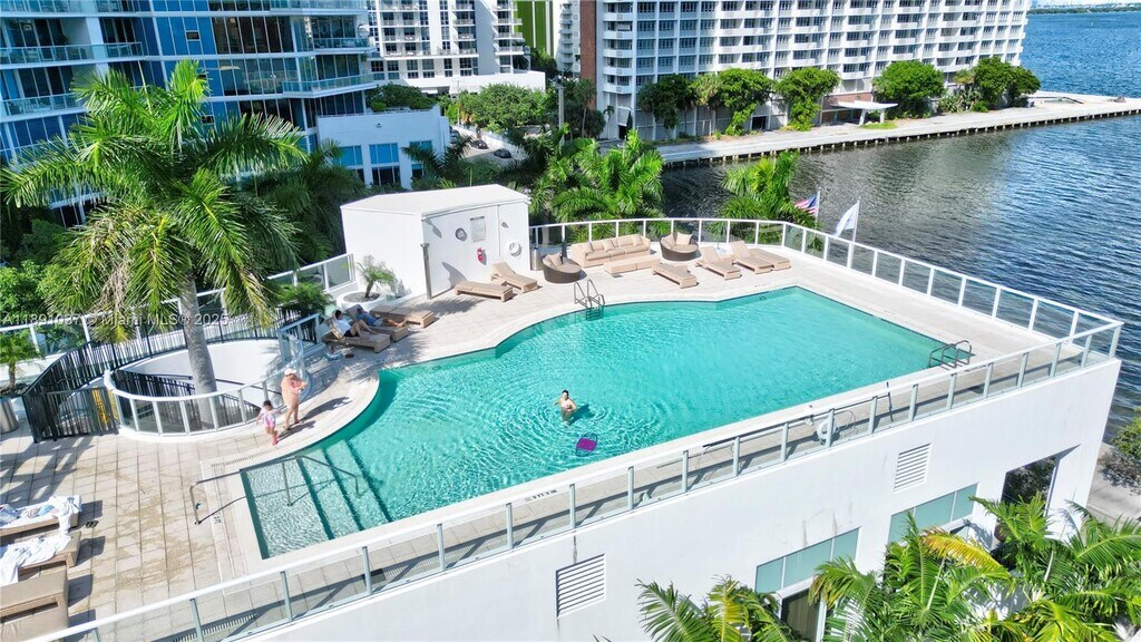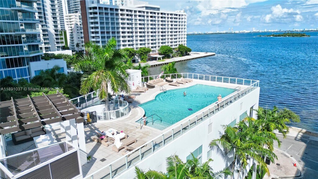 Beautiful two bedrooms and two bathrooms with amazing bay view from the living room and master bedroom. This building is like a resort with top amenities, including a heated infinity-edge swimming pool, heated sunset swimming pool, his an hers sauna and steam room, movie theater clubroom with a fully equipped kitchen and big-unscreen TV, billiard table, fitness center, spa with massage room, children's playroom, teen game room with arcade, concierge and valet parking. The building was designed by Lenny Kravitz. This unit has a private elevator, private foyer, 10 foot-high ceilings with floor to ceiling glass windows, an 8 foot-deep balcony with glass railing, in unit washer and dryer and top of the line kitchen appliances. Located in Edgewater.