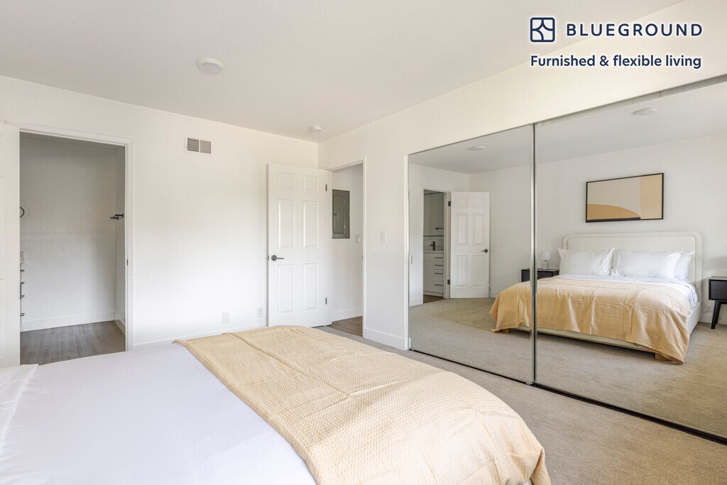 Feel at home wherever you choose to live with Blueground. You’ll love this pretty Cupertino furnished two bedroom apartment with its modern decor, fully equipped kitchen, and cheery living room. Ideally located, you’re close to all the best that Cupertino has to offer! (ID #SFO1975) The advertised rate of $2,770/month is the lowest available price, based on a 2 month(s) and 29 day(s) stay with a move-in date of October 1, 2025. If you’re looking for a 1-year stay, the rate is $4,230/month. Rates vary depending on the duration of stay, season, and other parameters. For exact pricing and additional pricing components, please visit our website and enter your desired move-in and move-out dates. The rate is applicable when billed upfront; it can be higher if billed in multiple payments. Brokers are welcome to reach out. Were you looking for an unfurnished lease? Try Blueground instead and upgrade from unfurnished to furnished living: - Furnished at rates comparable to unfurnished - No setup or furniture costs - save thousands - Move-in ready - save time, just bring your suitcase Designed with you in mind As with any Blueground apartment, you’ll find a thoughtfully designed space complete with beautiful furniture and a fully equipped kitchen in this two bedroom property. And, thanks to our superior quality mattresses, luxury linens, and towels, you can relax knowing you’ll always feel comfortably at home. When you’re ready for some fun, you can take in the Cupertino vibes or bring the entertainment to you with the premium wireless speaker or smart TV. This apartment also offers in-apartment laundry. Amenities Building amenities unique to this two bedroom apartment include an on-site: - BBQ Area - Dryer - Swimming pool - Washing machine - Parking - Pets allowed - Playground Arrival and ongoing support The entire apartment is yours to enjoy! Throughout your stay, you’ll have access to our Client Experience team through the Blueground App. You can schedule additional cleanings, submit maintenance requests, and view our neighborhood recommendations with just a few taps. We’ll share all details upon confirmation of your stay. Ideally Located This furnished home is located in the city of Cupertino, where the Apple headquarters is located. Many come to visit the Apple Park Visitor Center which has an Apple Store, Cafe Macs coffee bar and an observation deck. Calling Cupertino home means being close to The Picchetti Winery, a local winery and the De Anza College Fujitsu Planetarium that offers astronomy shows and laser displays. For recreation, residents of Cupertino spend time at Rancho San Antonio Open Space Preserve. It has over 24 miles of hiking trails, an education center and working farm. Other things to note Building amenities may have an extra cost. This Blueground apartment has flexible lease options, allowing you to book it for one month, a year, or more. Pets are welcome, though weight limits and breed restrictions apply and may incur fees. Parking is offered based on availability and is subject to a fee. Please keep in mind that this is a walk up building. We take great pride in ensuring every photo displayed is shot in our own units with our actual furnishings. That said, we regularly refresh our decor and furniture arrangement, which may differ from what’s pictured.