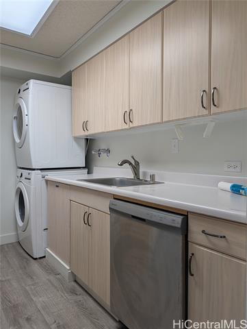 Spacious and freshly painted 1/1 with 1 covered and well-situated reserved parking stall is available in the Sakura. This clean and bright unit is conveniently located in Nuuanu, right up the road from Downtown Honolulu, Chinatown, with bus and nearby freeway access. There is newer vinyl plank flooring, and appliances include a range, refrigerator, dishwasher, 2 window air conditioners, ceiling fan, and in-unit front load washing machine and dryer. There is also a storage closet available for tenant use. Water/sewer is included, tenant pays electricity, cable tv/internet. Renters insurance is required, and no pets or smoking is allowed in the unit. **Disclosure...A plumbing replacement project is scheduled for this rental unit between May 26 - June 12, 2026. During this time, occupancy will still be allowed, and plumbing will be restored at the end of each work day, and Landlord shall reimburse Tenant a portion of rent.
