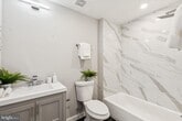 This one bedroom, one and a half bath with denand balcony at the brand new construction in Narberth offers the best of luxury living in the heart of the Main Line’s most beloved community. This boutique building, featuring just 16 thoughtfully designed units, is perfectly situated right across from the train station for ultimate convenience. This one-bedroom, one-bath apartment boasts soaring ceilings and oversized windows—blinds included—filling the space with natural light and creating an open, airy feel. High-end finishes throughout include quartz countertops, hardwood floors, stainless steel kitchen appliances, and an in-unit washer and dryer for modern comfort. The building is located in a safe, walkable neighborhood just steps from everything you need—restaurants, coffee shops, salons, the state store, a dry cleaner, post office, movie theater, and a variety of specialty food and retail establishments. Parks, a library, and a playground are also just around the corner, adding to the community charm. Parking is included, and pets are welcome at the landlord’s discretion. There is also flexibility for shorter-term rentals, and other floor plans are available. For more information about this apartment, upcoming units, or the exciting revitalization planned for Narberth, please inquire. Photos are of a similar unit.