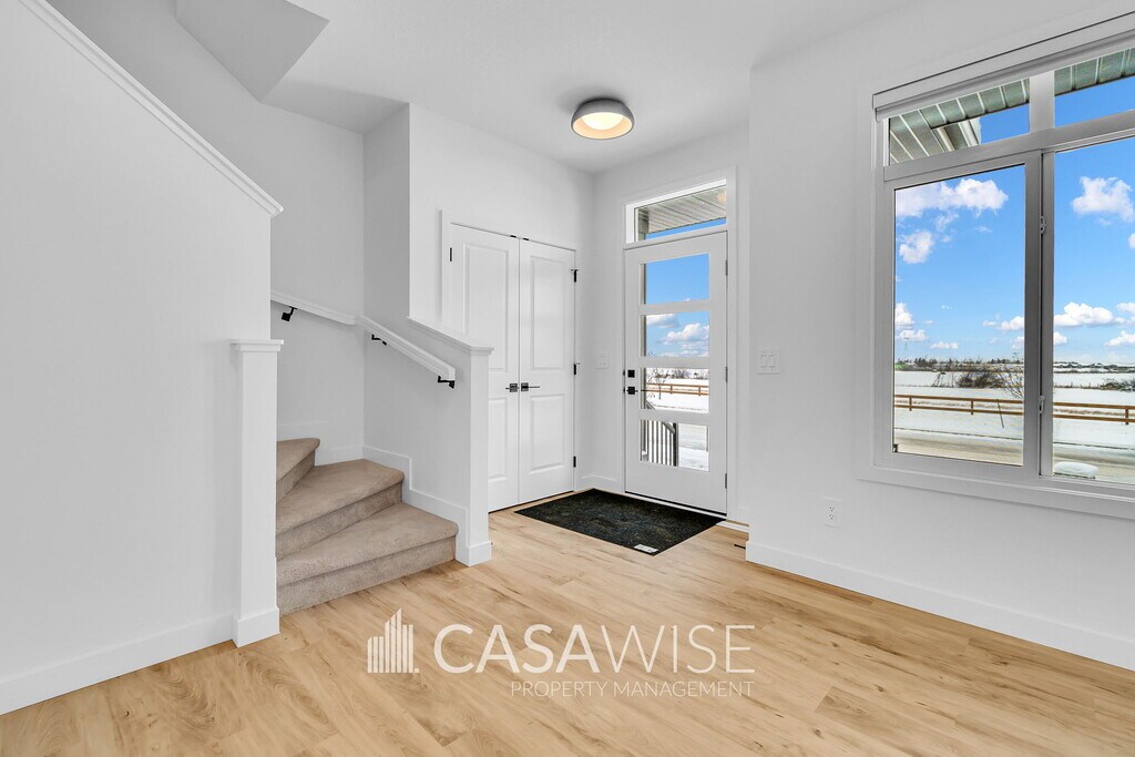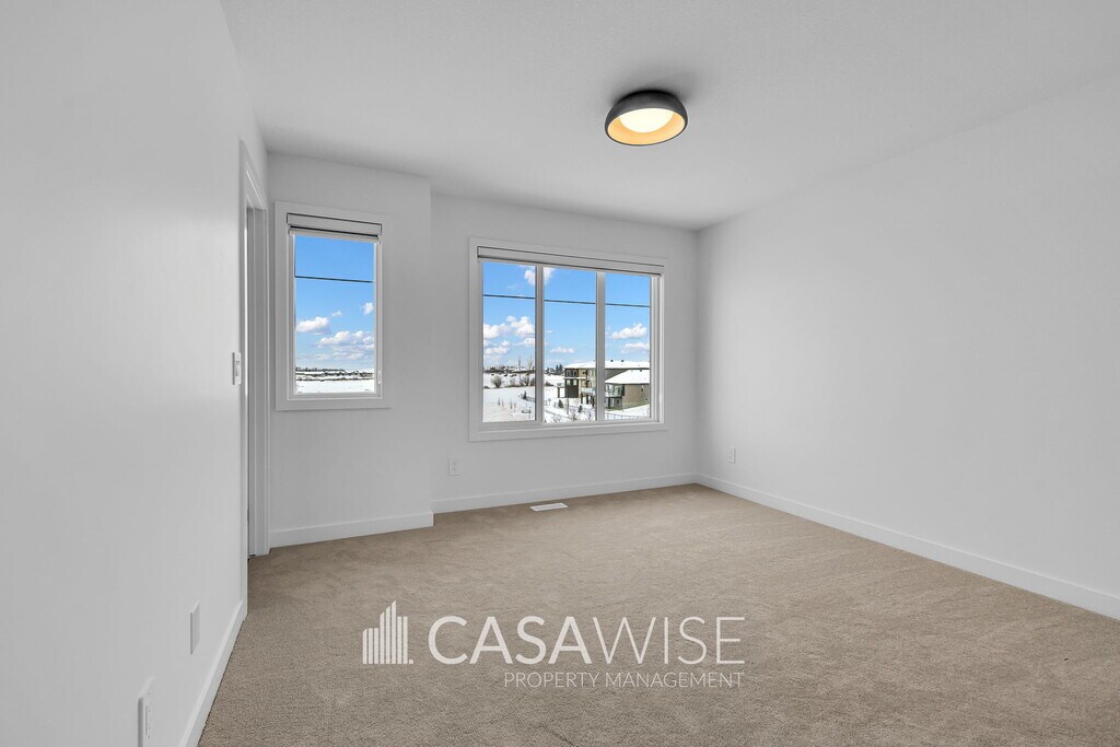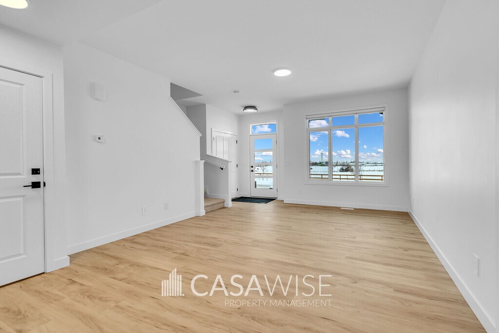 BEAUTIFUL 3-Bed/2.5-Bath Main Floor Suite With a Double Garage! Welcome to this beautifully designed 1,457 sq. ft. main suite, part of a modern fourplex located on the desirable Kinglet Boulevard in Edmonton. ? Spacious open-concept main floor combining comfort and modern style. ? Contemporary kitchen featuring stainless steel appliances, quartz countertops, and ample cabinetry. ? Convenient half bath located on the main floor for guests. ? Primary bedroom includes a private ensuite and large walk-in closet. ? Two generously sized bedrooms with a closet. ? A full shared bathroom for added comfort on the upper level. ? In-suite laundry for added convenience. ? Engineered hardwood flooring throughout living and dining areas. ? Sleek tile flooring in the bathrooms. ? Cozy carpet flooring throughout the upper level. ? Double rear detached garage. Snow removal and lawn maintenance are tenant's responsibility. ? The basement is being rented out separately. Ideally located just outside of Anthony Henday, this home is only 10 minutes from Mayfield Common's vibrant dining and shopping scene, less than 20 minutes to the world-renowned West Edmonton Mall, and within a 30-minute drive to local schools, offering both convenience and excitement. Fixed utility fee of $350/month (includes heat, water, and power). Additional fees may apply depending on the number of occupants. No Pets. No Smoking. Property managed by Casawise Property Management Only applications received through this link will be processed: If interested, please provide us with your name, phone number, available times for viewings and a little background about you (when do you need the unit for, how many people would be living in the unit, etc.). Thank you!