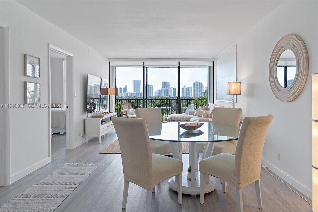 Beautifully updated 1-bedroom, 1.5-bath condo in the desirable Coronado Towers of Aventura! This spacious 1,038 sq ft unit features a modern open kitchen with granite countertops, stainless steel appliances, bar area, and sleek tile floors throughout. Large living room opens to a private balcony with serene golf and city views. Master suite offers a custom walk-in closet and a renovated bathroom. Building provides 24-hour security, heated pool, fitness center, sauna, one covered parking space and free guest parking. Excellent location near Aventura Mall, restaurants, and beaches! MLS # A11906115
