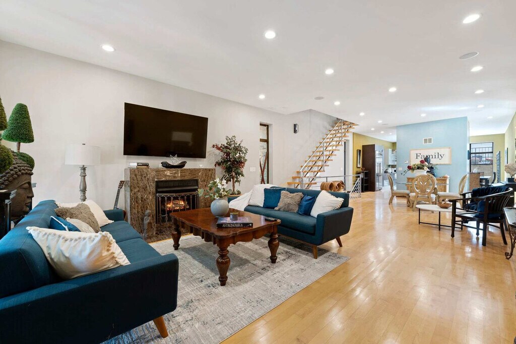 Welcome to this beautiful 5-bedroom home—a perfect blend of modern luxury, comfort, and positive energy. Designed with families and groups in mind, this spacious retreat offers plenty of room to relax, reconnect, and make lasting memories together. Step inside the Zen Oasis of Elegance and feel the peaceful atmosphere from the moment you arrive. Every detail has been thoughtfully chosen to create a warm, uplifting space where everyone can unwind and feel at home. Each of the 5 bedrooms has plush bedding, ensuring a restful night's sleep. The master includes a king-size bed, three bedrooms offer queen beds, and the final bedroom has a full over twin bunk bed. There are also two futons in the basement for additional sleeping space. The home includes three full bathrooms and a half bathroom, providing plenty of space for everyone to get ready for the day. The communal areas of the house are equally exceptional. The living room boasts ample seating where you can unwind with friends and family, sharing stories or simply enjoying each other's company. The open-concept kitchen is a chef's dream, equipped with state-of-the-art appliances and ample counter space to prepare culinary delights. Step outside to discover your private sanctuary—a beautiful rooftop over the garage offering a seamless extension of the positive energy within, or lounge in the sun on the rooftop of the home. The basement includes both a poker table and pool table to enjoy with friends or family. A cleaning fee is included in your reservation. However, guests are expected to leave the property in a reasonable condition. Any excessive cleaning required or damages incurred may result in additional fees. Located in a peaceful neighborhood, this Executive Zen Oasis is still conveniently close to all the attractions the vibrant city has to offer. Whether you're here for business or pleasure, you'll find that perfect balance between a rejuvenating retreat and easy access to urban amenities. Welcome to Pilsen, a vibrant and culturally rich neighborhood nestled in the heart of Chicago. Known for its artistic flair, diverse community, and historical significance, Pilsen offers a unique and immersive experience for residents and visitors alike. Pilsen is a hub of creativity and expression. The streets are adorned with colorful murals and street art that reflect the neighborhood's Mexican heritage and social activism. The National Museum of Mexican Art showcases a stunning collection of Mexican artistry, from traditional to contemporary, capturing the essence of the culture. Food enthusiasts will find Pilsen a paradise of flavors. The neighborhood is dotted with authentic taquerias, family-owned bakeries, and innovative restaurants that fuse global influences with local ingredients. Indulge in mouthwatering tacos, tamales, and freshly baked pan dulce. Pilsen's warm and tight-knit community is a defining aspect of its identity. You'll often find local markets, community gardens, and events that bring neighbors together. Festivals like the Pilsen Fest celebrate the neighborhood's cultural heritage with music, art, and food. Check-in is at 4pm, and check-out is by 11am. Adhere to these times to ensure a smooth transition for all guests. There is a strict no-smoking policy within the property with a $500 fine for violations. To maintain the peaceful environment for all guests, quiet hours are observed outside from 10pm to 8am. The maximum occupancy for the home is 14. Ensure that your group size does not exceed this limit. The space is not suitable for parties or events, and there is a $1,000 fine for violations. Unfortunately, pets cannot be accommodated at this time. Respect the wonderful neighbors who contribute to the peaceful ambiance of the area by maintaining a respectful distance and avoiding disturbances during your stay. Guests are liable for any damage to the property, and any damages noticed at check-in should be reported. A $500 fine applies for tampering with noise monitors or exterior cameras. There are no cameras inside the home. Check-in instructions might be withheld until you have successfully completed the verification portal. Registration Number: R2 [SI]