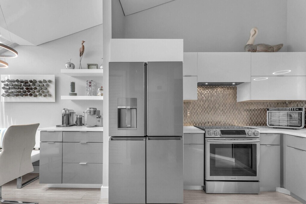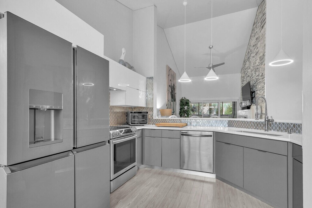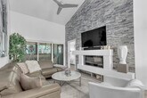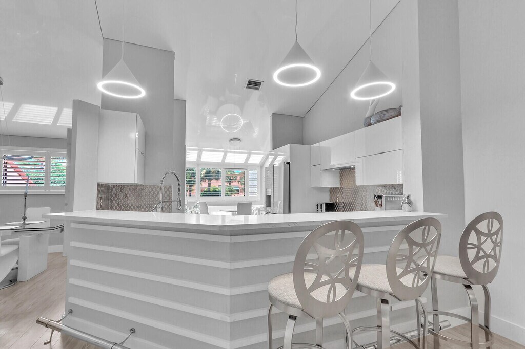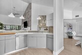 Enjoy the winter in this beautiful contemporary 2 bed and 2 bathroom condo in Juno Beach. This spectacular vacation home has been completely remodeled with beautiful upgrades and all the modern luxury comforts. Featuring wood laminate floors and plantation shutters throughout. The gourmet kitchen features stainless steel appliances, brand new refrigerator and quartz counter tops. A large living and dining area opens to an enclosed sun room, extending your living space and creating the ideal space to entertain & lounge. The owner's suite features a large walk in closet and a bathroom that feels like a spa oasis, including a steam shower. Located in beautiful Sea Oats featuring a heated pool, clubhouse & tennis courts. Walking distance to restaurants and stores.