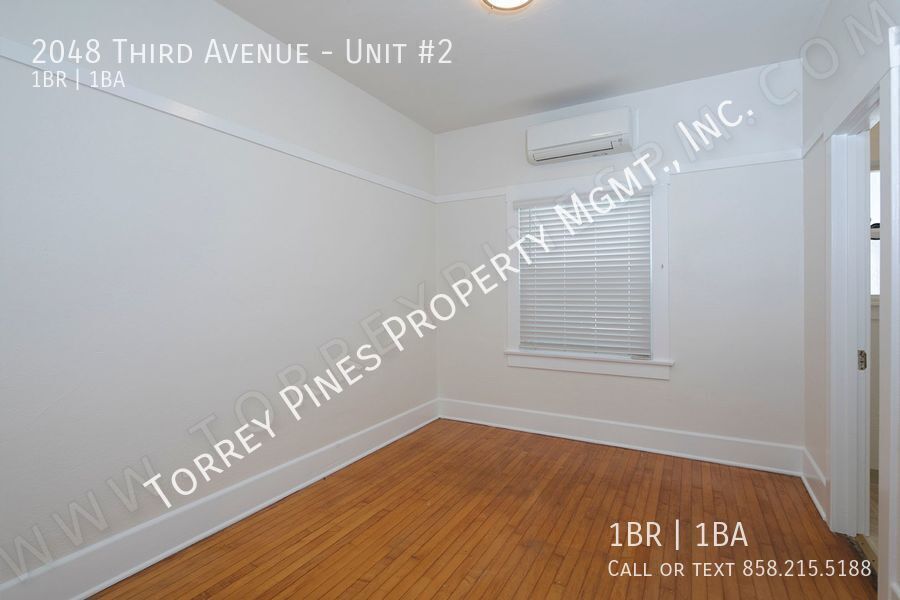 Near Downtown/Bankers Hill: Live near it all in your own peaceful escape! This is a light and bright 1 bedroom unit in a controlled access building nestled close to Balboa Park, Little Italy, Hillcrest, Downtown, and so much more. This charming vintage unit features a walk-in closet, air conditioning, a gas stove, beautiful natural hardwood flooring, updated cabinets with abundant kitchen storage, a patio, and your own small storage unit. It's a must see apartment! Schedule a showing today at the link below. Watch a walk-through video tour here: Cat OK with extra deposit, assistive animals accepted. Street parking only. Property features On-site coin laundry. Schedule a showing: Apply Now: For more information, please call All Applicants must have the following: -Verifiable Monthly Income of 2.5 Times the Monthly Rent -Good Credit and Rental History -A Valid Driver’s License or Identification -Renters Insurance Required. Professionally managed by Torrey Pines Property Mgmt. Inc