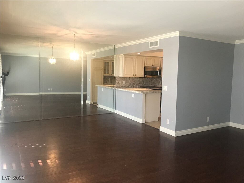 Enjoy F1 with this 2 Bed 2 Bath 2 PARKING SPOTS in the HEART OF LAS VEGAS! HIGHLY UPGRADED!Very Spacious Floor Plan!Kitchen with Stainless Steel Appliances Granite Countertops, Custom Cabinets!Plantation Shutters! Wood Flooring!Huge Master Bed with Double Closet!Master Bath has Double Shower!SPACIOUS BALCONY With BREATH TAKING VIEWS VIEWS OF THE STRIP, SWIMMING POOL, TENNIS COURTS & GARDENS!This unit is a GEM in the middle of the STRIP WITHOUT THE HUSTLE AND BUSTLE! Rent includes water, sewer and trash.
