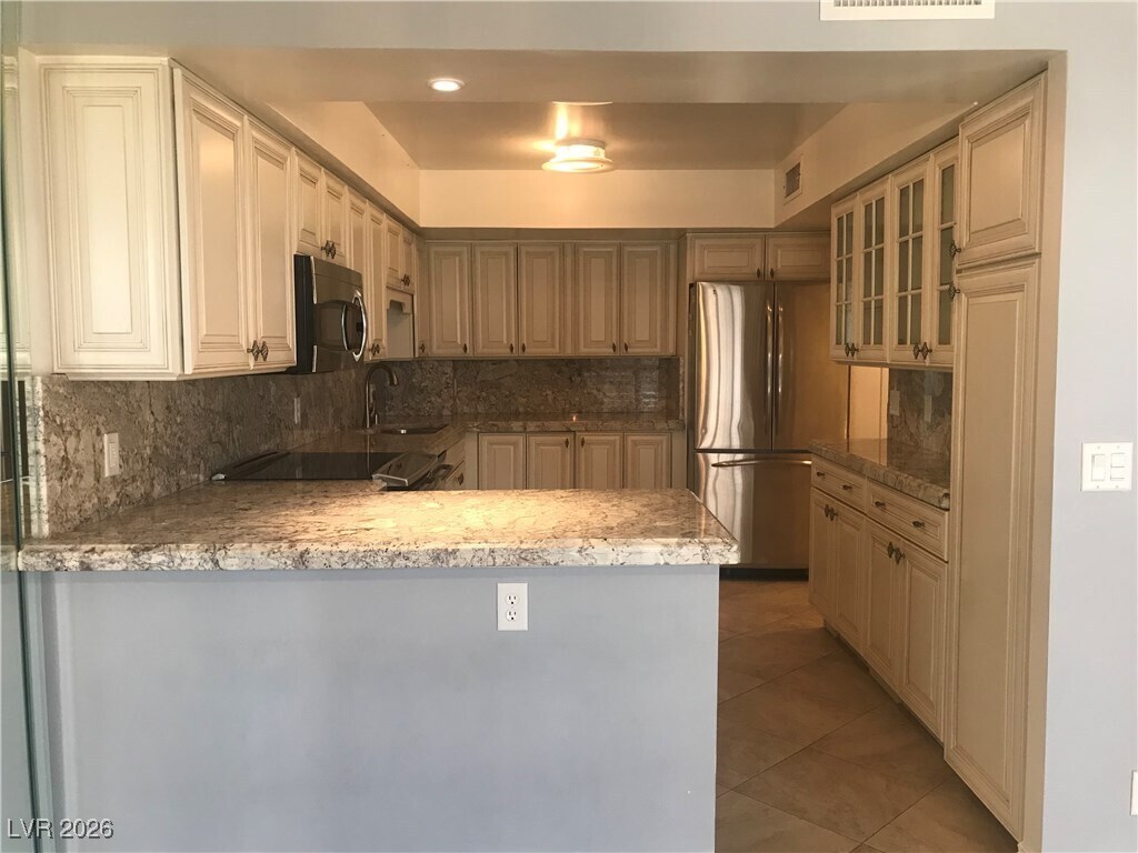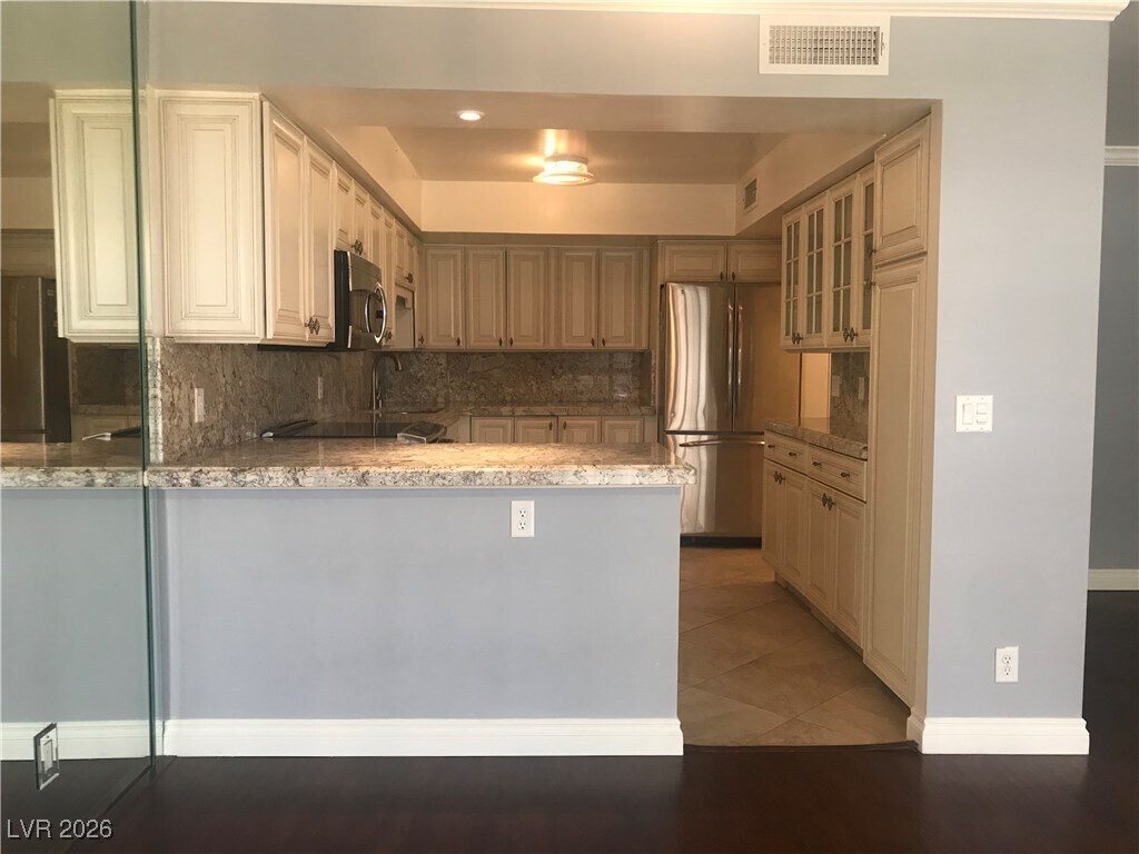 Beautifully furnished 2-bedroom, 2-bath high-rise condo for rent on the 8th floor of the iconic Marie Antoinette, offering 1,296 sq ft of bright, open living space. This well-designed residence features a spacious living room, dedicated dining area, full kitchen, and a private balcony with city-light views and abundant natural light throughout. The primary bedroom is generously sized, easily accommodating a king-size bed and additional furnishings, the 2nd bedroom is also well proportioned and versatile for guests or a home office. The unit includes a full-size washer and dryer. Located across from Topgolf and the Las Vegas GP Plaza, this condo offers excellent access to the Strip and major resort corridors. Community amenities include a pool, fitness center, tennis and pickleball courts, and secure gated parking. Minutes from MGM Grand, Harry Reid International Airport, The Sphere, Allegiant Stadium, UNLV, and surrounded by dining, shopping, and entertainment.