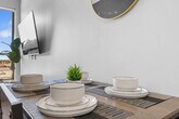 Stay in style in the eclectic city of Charlotte, home to the second-largest banking center in the USA. This classy 576 sq. ft. 2-bedroom and 1-bathroom apartment features two king-size beds for your comfort, lightning-fast Wi-Fi, a convertible sleeper couch, and a fully equipped kitchen, specially designed for your long-term stays. Step out to a lively neighborhood, minutes from SouthPark Mall and steps from restaurants, cafés, bars, and shops. Begin your day with a perfectly brewed cup of tea or instant coffee, decaf or regular, prepared just the way you like it from the convenient coffee station in your upscale kitchen. Whether you're here for business or leisure, this space is designed to provide the perfect balance of comfort and convenience. With vibrant restaurants just minutes away, you might find yourself exploring the culinary scene in Charlotte each night. After a long day, it’s reassuring to know that your well-equipped kitchen and elegant dining table are ready to provide a 5-star dining experience right at home. Whether you choose to venture out or stay in, this space serves as the perfect home base for work, relaxation, and entertainment. Step inside and discover an inviting open-concept living area, elegantly furnished to provide a blend of relaxation and functionality. Large windows flood the space with natural light, while modern décor and high-end finishes create a sophisticated yet comfortable atmosphere. The spacious living area is thoughtfully designed with plush seating, a 55” Smart 4K TV, and elegant décor. Fast Wi-Fi (300+ Mbps) is perfect for streaming, remote work, or video calls. The smart TV offers streaming services like Netflix, Hulu, and HBO Max (login required). Enjoy self check-in with a keyless smart lock for a seamless arrival. A dedicated work station with a standing desk is perfect for remote work. The in-unit washer and dryer are energy-efficient, with detergent provided. We welcome up to two pets per reservation, each weighing under 35 lbs, with a fee of $49 per pet for stays of 1–6 nights. Additional charges apply for longer stays. For pets over 35 lbs, a one-time $49 large pet fee applies for one pet, and $95 for two larger pets. Bringing undisclosed pets into the unit may result in a minimum $500 fine and cancellation of your stay without refund. Optional mid-stay cleaning is available for $175, which includes new linens, surface cleaning, and trash removal. Early check-in and late checkout are based on availability, with fees of $35 for 1 hour and $49 for 2 hours. Situated in a vibrant neighborhood, this property places you within minutes of top attractions, dining, and nightlife. Enjoy easy access to the NASCAR Hall of Fame, Discovery Place Science, Carowinds Amusement Park, Billy Graham Library, U.S. National Whitewater Center, Spectrum Center, SouthPark Mall, Bank of America Stadium, Camp North End, NoDa (North Davidson Arts District), Plaza Midwood, and Freedom Park. Public transit and ride shares are readily available, offering quick access to Uber, Lyft, and local transit. Quiet hours are strictly enforced from 8:00 PM to 8:00 AM. During this time, guests must keep noise to a minimum, including avoiding loud conversations, TV, music, or activity that may disturb neighbors. Bluetooth speakers, sound systems, and amplified music are prohibited at all times throughout the unit, hallways, and outdoor areas. This property is equipped with noise monitoring devices and exterior security cameras. If noise levels exceed 80 decibels for more than 10 consecutive minutes, guests will be fined $2,500, removed from the property immediately, and their reservation will be canceled without refund. Smoking is strictly prohibited anywhere on the premises, including inside the unit, on balconies or patios, and in shared or public spaces. The unit is equipped with active smoke detectors. If a detector is tampered with, disabled, or triggered due to smoking, guests will be fined $2,500 and removed from the property immediately without refund. Unauthorized guests will result in a $500 fine per person, immediate removal from the property, and cancellation of the reservation without refund. Includes a dedicated work station with a standing desk, perfect for remote work. Fast Wi-Fi (300+ Mbps) is available for streaming, remote work, or video calls. A laptop computer is not included. [SI]