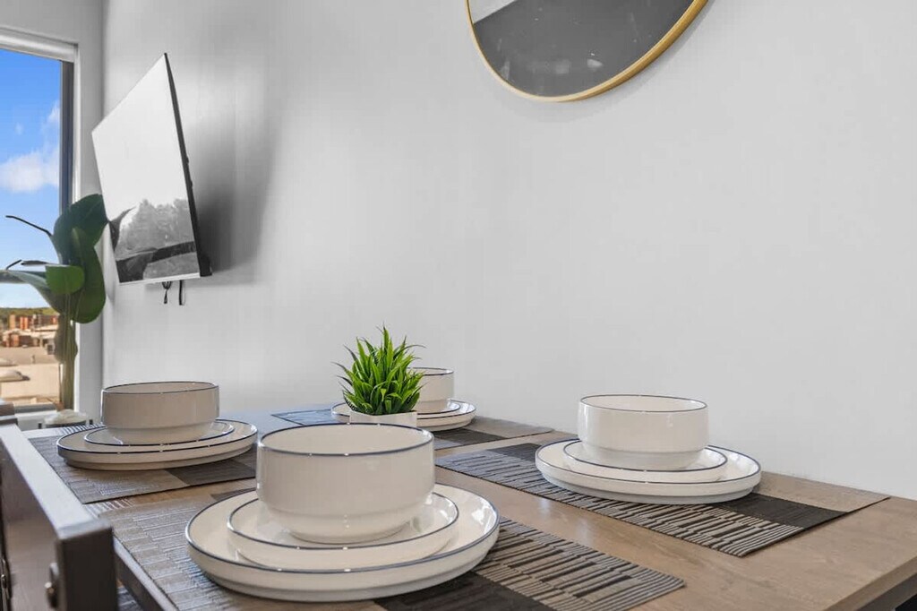 Stay in style in the vibrant city of Charlotte, home to the second-largest banking center in the USA. This classy 576 sq. ft. 2-bedroom and 1-bathroom apartment features a king-size bed and two plush full beds for your comfort. Enjoy lightning-fast Wi-Fi, a convertible sleeper couch, a fully equipped kitchen, and other luxury amenities, specially designed for longer stays. Step out to a lively neighborhood, minutes from SouthPark Mall and steps from restaurants, cafés, bars, and shops. Begin your day with a perfectly brewed cup of tea or instant coffee from the convenient coffee station in your upscale kitchen. Whether you're here for business or leisure, this space provides the perfect balance of comfort and convenience. With vibrant restaurants just minutes away, explore the culinary scene in Charlotte each night. After a long day, your well-equipped kitchen and elegant dining table are ready to provide a 5-star dining experience right at home. This space serves as the perfect home base for work, relaxation, and entertainment. We welcome up to two pets per reservation, each weighing under 35 lbs, with a fee of $49 per pet for stays of 1–6 nights. Additional charges apply for longer stays. For pets over 35 lbs, a one-time large pet fee applies. Bringing undisclosed pets may result in a minimum $500 fine and cancellation of your stay without refund. Early check-in and late checkout are available based on availability for a fee. Optional mid-stay cleaning is offered for extended stays, including new linens, surface cleaning, and trash removal. Situated in a vibrant neighborhood, this property places you within minutes of top attractions, dining, and nightlife. Enjoy easy access to the NASCAR Hall of Fame, Discovery Place Science, Carowinds Amusement Park, Billy Graham Library, U.S. National Whitewater Center, Spectrum Center, SouthPark Mall, Bank of America Stadium, Camp North End, NoDa (North Davidson Arts District), Plaza Midwood, and Freedom Park. Public transit and ride shares are readily available, offering quick access to Uber, Lyft, and local transit. Quiet hours are enforced from 8:00 PM to 8:00 AM. Noise levels exceeding 80 decibels for more than 10 consecutive minutes may result in a $2,500 fine and immediate removal from the property. Smoking is strictly prohibited anywhere on the premises. Tampering with smoke detectors or other in-unit devices will result in a $2,500 fine and immediate removal. Unauthorized guests will incur a $500 fine per person and immediate removal. Smart lock access details will be shared 24 hours prior to check-in after identity verification is completed. Includes a dedicated work station with a standing desk, perfect for remote work. Fast Wi-Fi at 300+ Mbps is ideal for streaming, remote work, or video calls. A laptop computer is not included. [SI]