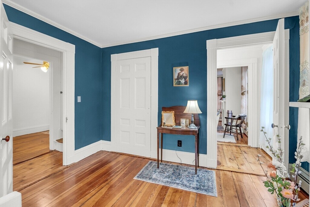 This large colonial-style apartment is situated in the middle of the house in the ultimate location in desirable downtown Groton. Walk in to bright cheery kitchen w plenty of cabinets,laundry off kitchen,half bath,dining rm,living rm and screened porch on this level w Main st entrance and parking area entrance. Main bedroom,bed2,full bath on 2nd floor. Up steep steps to third floor to find the 2 largest bedrooms and an open hallway area. All bedrooms have lg closets. Two in-line (one in front of the other) off-street parking spots. Enjoy no bills as rent includes ALL utilities (See Firm Remarks). This oversized half colonial with beautiful crown molding and finishing details may be rented furnished if desired (price negotiable). House also has a currently rented 1br/1bth (Unit 2),Available 2br/1bth (Unit 3),Acupuncturist office in back(207) and Available commercial space to be rented(may be rented as storage along with Unit 1,inquire). Walkable to food/bar/amenities/rail trail. MLS# 73441180