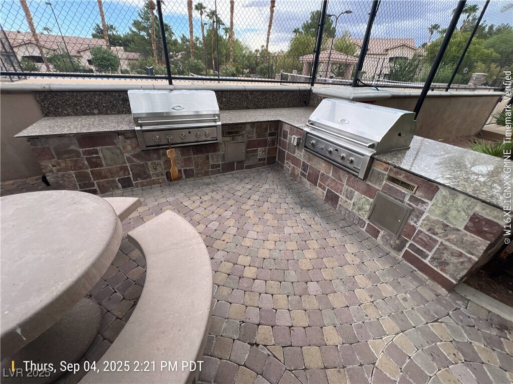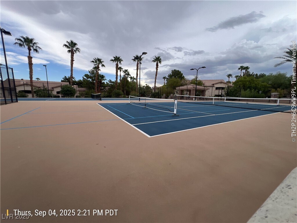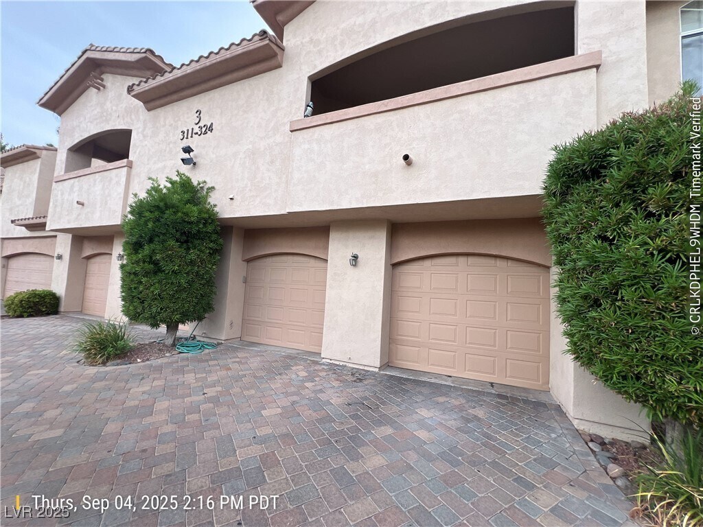 Discover resort-style living in this beautifully updated 3-bedroom, 2-bath upstairs condo, perfectly tucked away in one of the most tranquil corners of a guard-gated community. Enjoy unmatched privacy with spacious balconies off both the living room and primary suite—ideal for morning coffee or evening sunsets. Inside, you’ll find elegant granite countertops, modern appliances, and easy-care flooring throughout. A rare oversized 2-car garage provides plenty of storage, while the community offers ample guest parking for family and friends visiting Sin City. Step outside to walking trails, parks, and a full suite of amenities: sparkling pool, bubbling spa, tennis courts, fitness center, and clubhouse. With the HOA covering water, trash, lush landscaping, and access to these incredible amenities, this isn’t just a home—it’s a lifestyle. Come see why this hidden gem is the one you’ve been waiting for!