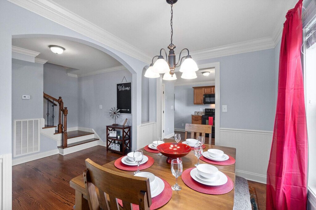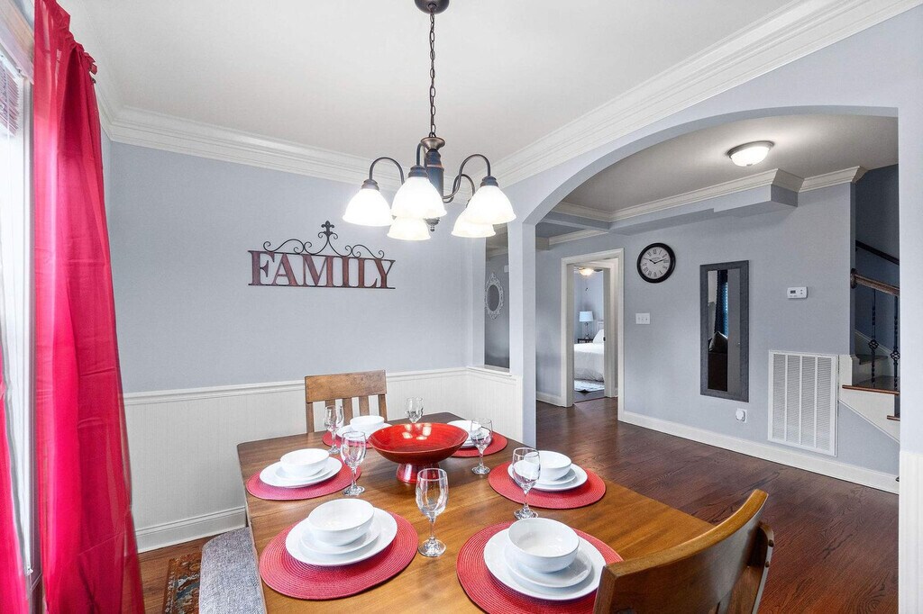 Enjoy a suburban retreat just minutes from downtown in this updated cottage-style home, close to Cumberland and Red Rivers! This spacious 4-bedroom, 1.5-bathroom home features hardwood floors, an original fireplace, and beautiful windows. Relax under a large tree in the front yard. A separate Carriage House shares the yard and driveway. Feel at home in this family friendly neighborhood! The Clarksville Cottage is set on a spacious lot with ample room for parking, whether it be an RV or large vehicle. The backyard features a patio and outdoor fire pit, great for entertaining or sunbathing in the Tennessee heat! The living area features a fireplace. The dining room table can fit up to 8 people. Upstairs, there is a vanity area. This is a pet-friendly home. All pets require a non-refundable pet fee. Pets must be crated when they are left unattended in the home. Pets are not allowed on furniture or beds, and all waste must be cleaned up from the yard. Located on all GPS devices, this home is nestled on a large lot in a family friendly neighborhood. Quiet hours are between 10 PM and 7 AM. If there is evidence of smoking cigarettes, vapes, e-cigs, pipes, etc. (smell, ash, etc.) in or around the home, an automatic $500 damage charge will be incurred. The same charge applies if cigarette butts are found outside of the home. If marijuana is smoked in or around the home a $500 fee will be charged, and details about the reservation may be turned over to the appropriate authorities. Parties are prohibited at the home. Other events are permitted at the home only with prior approval. If you violate quiet hours and disturb the neighbors, your reservation will be canceled; you will be required to leave the property immediately and you will not be eligible for any refunds. If any towels and linens are stained or damaged beyond repair, a replacement fee will be charged to cover the cost of new linens. If there is evidence of pet hair on the furniture, excess hair in the home, stains, or waste found in the yard or home, you will be charged the cost to clean this. There is a $100 charge for third party trash removal if an excessive amount of trash is left at the property. You must be at least 21 years of age to rent this property. [SI]