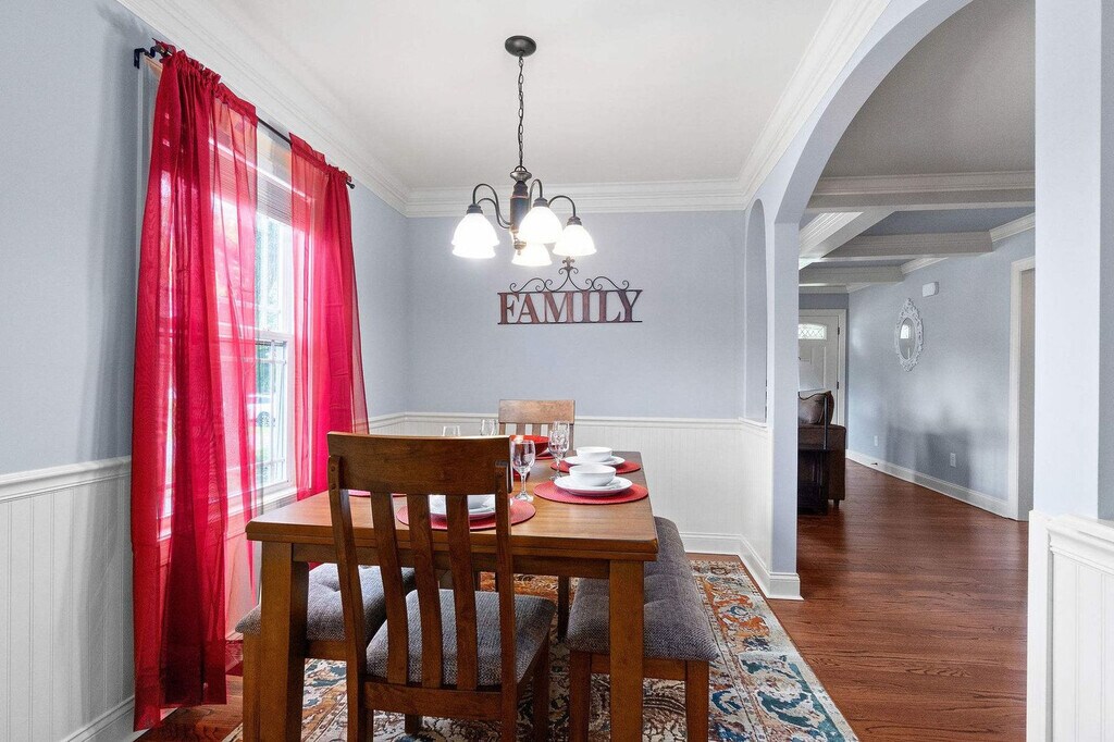 Experience a suburban feel less than five minutes from downtown in this fully updated modern cottage-style home with detached carriage house, just minutes to Cumberland and Red Rivers! Feel at home in this spacious and well-appointed home with beautiful hardwood floors, an original fireplace, and beautiful windows. This 4-bedroom, 2-bath home with a separate garage apartment with 2 bedrooms and 1 bath, is set on a spacious lot with ample room for parking. The backyard features a large patio, great for entertaining or sunbathing in the Tennessee heat! The living area features a fireplace. The dining room table can fit up to 8 people. In the carriage house, the living room and kitchen are open. Located on a large lot in a quiet residential neighborhood, you will feel right "at home" in this house. Driving is recommended, and there is ample room for parking in the driveway and the garage. Uber and Lyft are available in the area as well. Quiet hours are between 10 PM and 7 AM. If our cleaning crew reports any signs of smoking cigarettes, vapes, e-cigs, pipes, etc. (smell, ash, etc.) in or around the home, an automatic $500 damage charge will be incurred. The same charge applies if cigarette butts are found outside of the home. If marijuana is smoked in or around the home a $500 fee will be charged, and details about the reservation may be turned over to the appropriate authorities. Parties are prohibited at the home. If you violate quiet hours and disturb the neighbors, your reservation will be canceled, you will be required to leave the property immediately and you will not be eligible for any refunds. There is a $100 charge for third party trash removal if an excessive amount of trash is left at the property. You must be at least 21 years of age to rent this property. Pets must be crated when they are left unattended in the home. Pets are not allowed on furniture or beds, and all waste must be cleaned up from the yard. If there is evidence of pet hair on the furniture, excess hair in the home, stains, or waste found in the yard or home, you will be charged the cost to clean this. [SI]