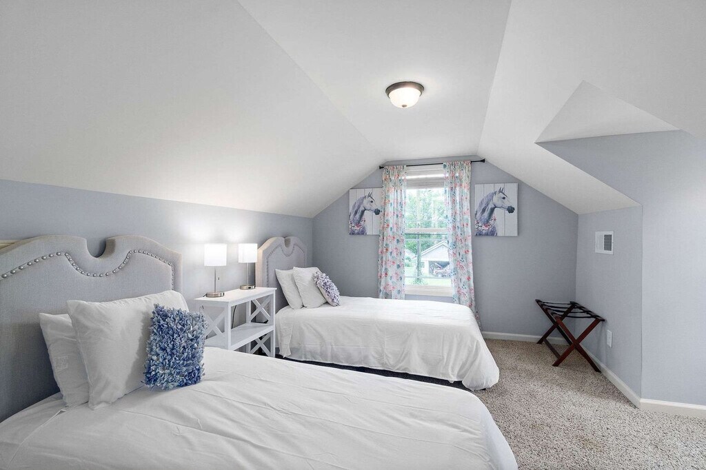 Feel at home in the Campbell Carriage House, nestled on a lovely property behind a cottage-style home, just moments from downtown Clarksville. This property, which sits over the garage, opens up to the living room and kitchen after you enter up the stairs. This carriage house features access to beautiful grass out front, two beautiful bedrooms, and one full bathroom. This is a pet-friendly home, and all pets require a non-refundable pet fee. Located on a large lot in a quiet residential neighborhood, this house is a short drive to King Tut Coffee and Providence Boulevard, under 10 minutes to Campbell, APSU, and downtown Clarksville, and just an hour to Nashville Airport and downtown Nashville. Quiet hours are between 10 PM and 7 AM. You must be at least 21 years of age to rent this property. If there are any signs of smoking cigarettes, vapes, e-cigs, pipes, etc. (smell, ash, etc.) in or around the home, an automatic $500 damage charge will be incurred. The same charge applies if cigarette butts are found outside of the home. If marijuana is smoked in or around the home a $500 fee will be charged, and details about the reservation may be turned over to the appropriate authorities. Parties are prohibited at the home. Other events are permitted at the home only with prior approval. If you violate quiet hours and disturb the neighbors, your reservation will be canceled, you will be required to leave the property immediately, and you will not be eligible for any refunds. Noise may be monitored with exterior cameras and/or noise monitoring technology. You will be responsible for any damage to the home or its furnishings during your stay. Please bag all trash and place it in the bins provided. There is a $100 charge for third-party trash removal if an excessive amount of trash is left at the property. Pets must be crated when they are left unattended in the home. Pets are not allowed on furniture or beds, and all waste must be cleaned up from the yard. If there is evidence of pet hair on the furniture, excess hair in the home, stains, or waste found in the yard or home, you will be charged the cost to clean this. [SI]