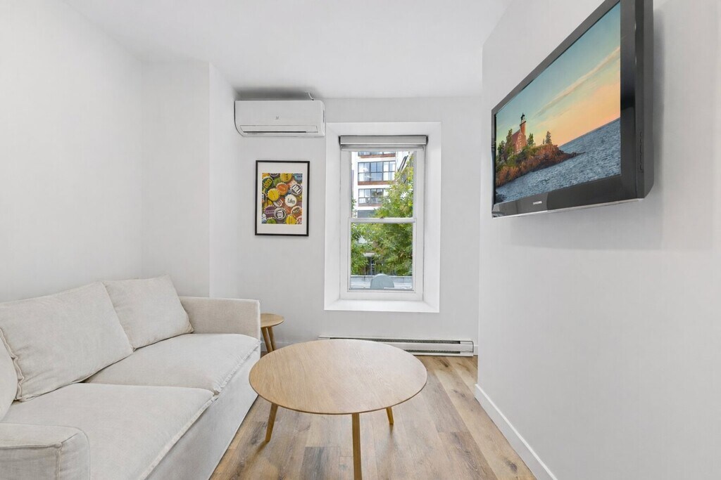 Take advantage of 3 months free in this charming, fully furnished apartment, ideally located between Downtown and the vibrant Plateau-Mont-Royal. This fully renovated unit offers 3 spacious bedrooms, 2 bathrooms, and generous living areas designed for both comfort and functionality. It features modern furnishings, a fully equipped kitchen, in-unit washer and dryer, and air conditioning for year-round comfort. Enjoy your own private balcony. A must-see!