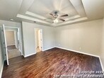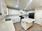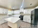 This charming single-story home in the sought-after New Braunfels Ranch Estates subdivision offers 3 bedrooms and 2 bathrooms with an inviting open floor plan. The living area flows seamlessly into the eat-in kitchen, which features tile flooring throughout, white cabinetry, a smooth cooktop range with vent hood, refrigerator, dishwasher, and a central island perfect for meal prep or casual dining. The spacious primary suite is a private retreat, complete with updated laminate flooring, tray ceiling, ceiling fan, and a luxurious en-suite bath with dual vanities, a walk-in shower, and a generous walk-in closet. Two secondary bedrooms also feature updated laminate flooring and share a full bathroom. Outdoors, an extended covered patio provides the ideal setting for relaxing or entertaining in the backyard. Conveniently located near shopping, schools, and with easy access to IH-35, this home combines comfort and convenience in a prime New Braunfels location.