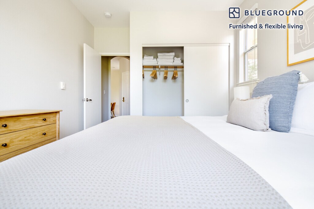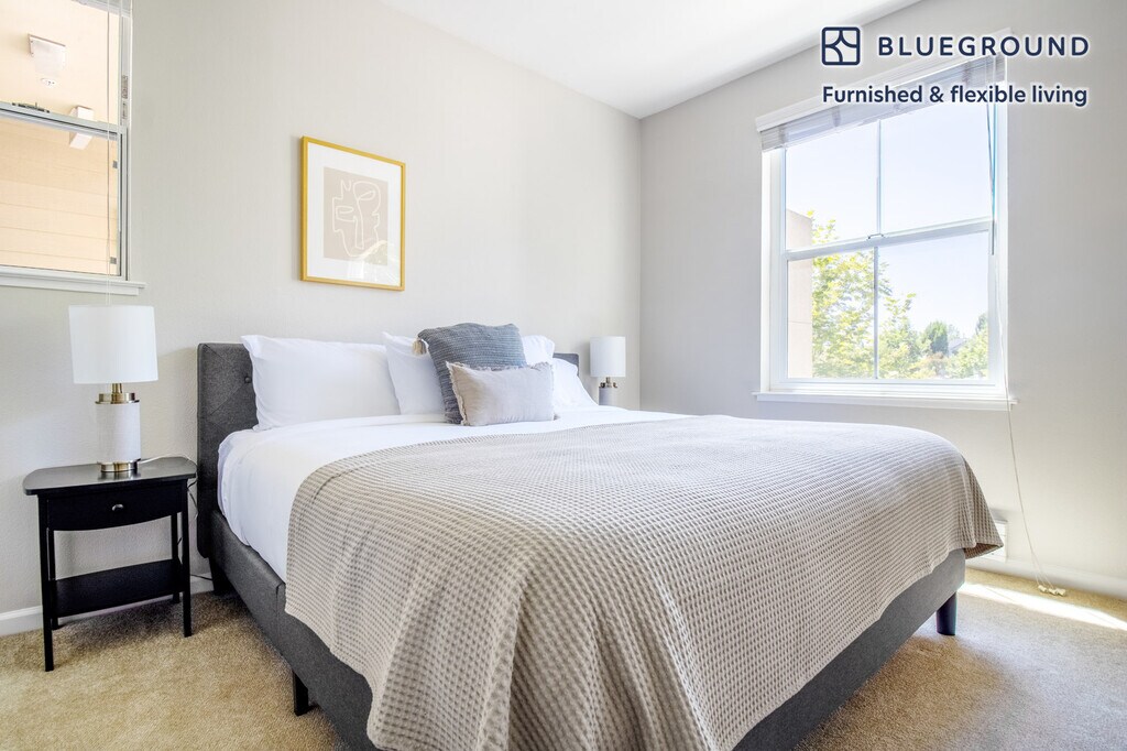 Discover the best of Cupertino, with this one bedroom apartment in Sunnyvale West. It’ll be easy to simply show up and start living in this furnished apartment with its fully equipped kitchen, living room, and our dedicated, on-the-ground support. (ID #SFO776) The advertised rate of $2,420/month is the lowest available price, based on a 1 month(s) and 24 day(s) stay with a move-in date of December 21, 2025. If you’re looking for a 1-year stay, the rate is $3,280/month. Rates vary depending on the duration of stay, season, and other parameters. For exact pricing and additional pricing components, please visit our website and enter your desired move-in and move-out dates. The rate is applicable when billed upfront; it can be higher if billed in multiple payments. Brokers are welcome to reach out. Were you looking for an unfurnished lease? Try Blueground instead and upgrade from unfurnished to furnished living: - Furnished at rates comparable to unfurnished - No setup or furniture costs - save thousands - Move-in ready - save time, just bring your suitcase Designed with you in mind Thoughtfully designed with bespoke finishes, modern furnishings, and a fully equipped kitchen, you’ll enjoy that “I’m home” feeling with this Blueground apartment. Whether you’re lounging in your cozy living room streaming the latest and greatest entertainment on the smart TV or premium wireless speaker, or getting some well-earned rest on the superior quality mattress with luxury linens, you’ll fall in love with everything this Sunnyvale West apartment has to offer. This apartment also offers in-apartment laundry. Sleeping arrangements King Bed, 70.8in/180cm Amenities Building amenities unique to this one bedroom apartment include an on-site: - BBQ Area - Dryer - Swimming pool - Washing machine - Lounge - Parking Arrival and ongoing support The entire apartment is yours to enjoy! Throughout your stay, you’ll have access to our Client Experience team through the Blueground App. You can schedule additional cleanings, submit maintenance requests, and view our neighborhood recommendations with just a few taps. We’ll share all details upon confirmation of your stay. Other things to note Building amenities may have an extra cost. This Blueground apartment has flexible lease options, allowing you to book it for one month, a year, or more. Parking is offered based on availability and is subject to a fee. Please keep in mind that this is a walk up building. We take great pride in ensuring every photo displayed is shot in our own units with our actual furnishings. That said, we regularly refresh our decor and furniture arrangement, which may differ from what’s pictured. [SI]
