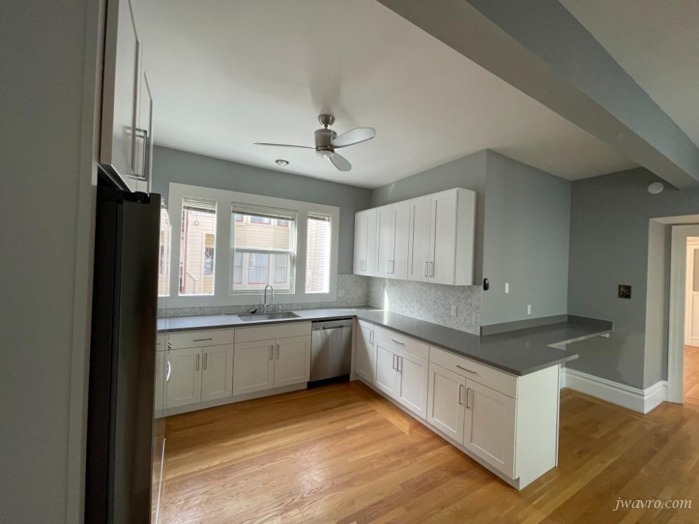 Top floor 3 level, recently remodeled condo, 3-4 bedrooms, 3 bathrooms with spectacular Alcatraz and Bay views, 2 decks and a gourmet kitchen with eat-in bar seating.On the first level are the kitchen, formal dining room, living room, 2 bedrooms, 2 bathrooms and access to one of the 2 private decks.The appliances include stainless steel induction stove, refrigerator, dishwasher and disposal. Beautiful Quartz counters and a long breakfast bar for casual dining.The formal dining room attaches to a full bathroom and can be used as a 2nd master suite.The living room is super spacious. If the dining room is used as a bedroom, the living room easily fits a dining table as well as living room furniture.The second level has a 2-room master suite, a private bathroom with a jacuzzi tub and access to a large 2nd deck.The third level is an attic bonus room best used as an office or guest bedroom.Other features of this special home include:** Victorian charm with the original curved windows in the dining room** 32 double paned windows throughout** Indirect rope lighting in the ceiling** 2 decorative Victorian fireplaces with mantels** Original built-in bookcases with glass doors and original hardware** Separate heat registers in all the rooms** Ceiling fans in the living room, dining room and 2 bedrooms** 1 stack washer and dryer is provided. A connection for the tenant to install a 2nd washer and dryer is available if the tenant wants to install it on their own** Hardwood floors in the common areas and carpet in the bedrooms** Both bedrooms on the first floor have walk in closets** Parking is not available in the building but a public garage is available 1 block away. Prices vary starting around $350/month.A small dog will be considered.This unique property in popular Pacific Heights is 1 block from shops, yoga and Equinox gym, restaurants and gourmet delis/groceries on Union Street.99 Walk Score! This is a Walker's Paradise (no car required).Available around November 5, 2025.