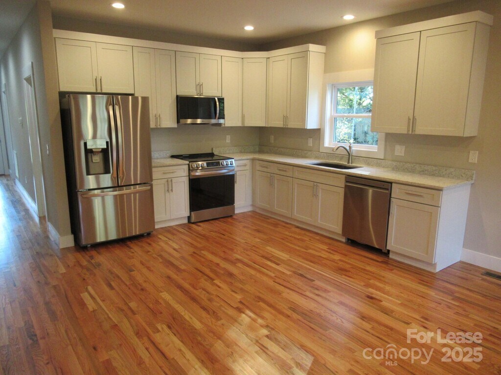 This charming, new home boasts over 1,200 square feet of well-designed living space. Located just minutes from downtown Lincolnton, it offers both convenience and modern comfort. The spacious kitchen features elegant granite countertops and brand-new appliances, perfect for preparing meals. The large den with vaulted ceilings and a ceiling fan creates an open and airy atmosphere. The primary suite is a true retreat, complete with a dual vanity and a walk-in closet. The two additional bedrooms are generously sized, offering plenty of space for family or guests. Outside, enjoy a covered front porch and a rear covered patio, ideal for outdoor gatherings and relaxation. A roomy, oversized concrete driveway leads to a one-car garage, providing ample parking and storage. Note: An application is required for lease consideration. Contact Grant Mosteller for details at .
