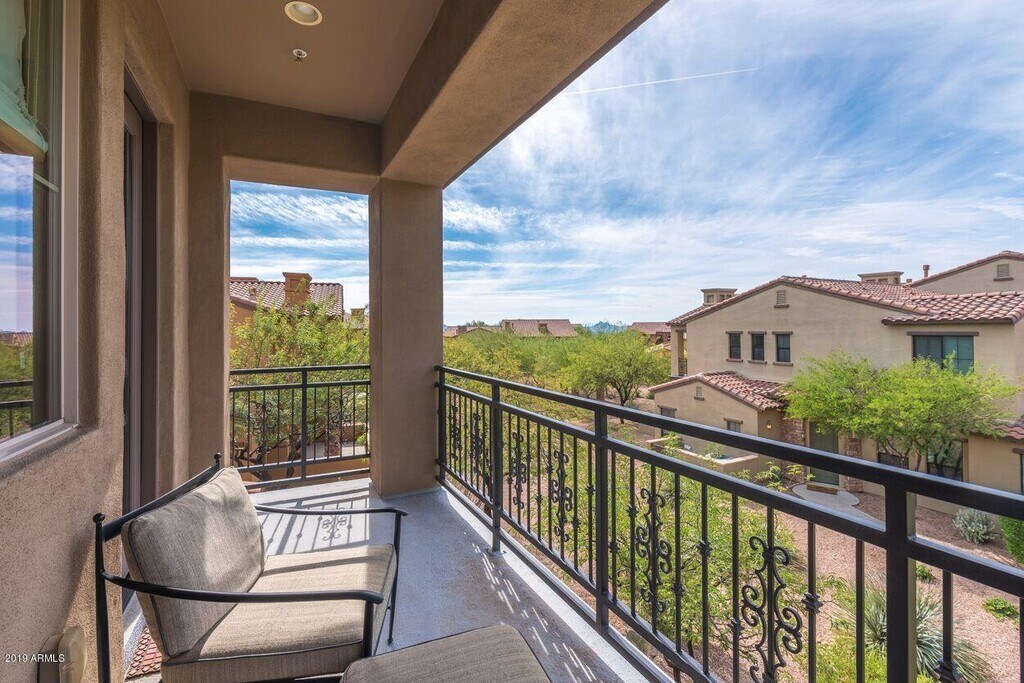 Gorgeous fully furnished rental! This wonderful town home is nestled in the Encore directly behind Grayhawk Golf Club's Talon Course. This remodeled home has been meticulously furnished,decorated and supplied with all you will need to enjoy your stay. There are two spacious bedrooms plus a den with a queen sofa sleeper that can be utilized as a bedroom or an office (fully stocked with supplies and a printer). The great amenities,restaurants and events within the area will keep you going,so get a good night's sleep on brand new mattresses with high end Peacock Alley linens for your comfort! Enjoy morning coffee on the patio or the upstairs balcony while taking in the peaceful views. The Encore is a gated community with walking trails,a heated pool/spa & gym.