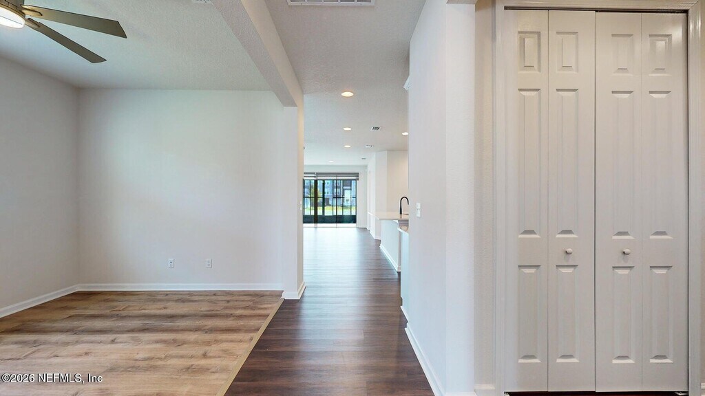 Welcome home to this beautifully maintained 3-bedroom, 3-bathroom single-family residence with a versatile flex room that can easily serve as a 4th bedroom, home office, or bonus space, located in the desirable Greyhawk community of Oakleaf Plantation. Built in 2021, this 1,877 sq ft, single-story ranch-style home offers a modern, open-concept layout designed for comfort and functionality. The spacious kitchen features quartz countertops, soft-close cabinetry, and a large prep island, perfect for everyday living and entertaining. The flex room and all bedrooms boast new luxury vinyl plank flooring, adding a clean, contemporary feel throughout. The home is well-equipped with newer appliances, including a refrigerator, garbage disposal, washer and dryer, and a gas range and oven. The split-bedroom floor plan provides privacy, while the primary suite offers a walk-in closet and private bath. Step outside to enjoy the covered and screened rear patio overlooking a peaceful pond, complete with new vinyl plank flooring—an ideal spot to relax and unwind. The property also includes a sprinkler system and a 2-car attached garage. Residents of Greyhawk enjoy access to outstanding community amenities, including: Resort-style pool & children’s pool Fitness center Clubhouse Basketball courts Dog park Conveniently located near shopping, dining, top-rated Clay County schools, and with easy access to Blanding Blvd, Argyle Forest Blvd, Oakleaf Plantation Parkway, and I-295, this home offers both comfort and convenience. Rental Details: Rent: $2,300/month Residential Benefits Package: $45/month (required) Unfurnished No pool This home offers modern living, serene water views, and an unbeatable Oakleaf location—schedule your showing today.