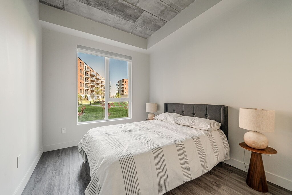 *PROMOTION-2 MONTHS FREE* - Beautiful new apartment for rent in Ville Saint-Laurent. Featuring 2 bedrooms and 1 bathroom, this bright unit stands out for its optimized kitchen space, high ceilings, and practical layout. The Noria project offers an all-inclusive formula with appliances, services, and window blinds included. Indoor parking ($), charging stations, bike storage, a gym, common areas, and a landscaped courtyard with pool. Close to Du Collège metro, direct bus service to downtown, and all essential services. Multiple units available (3 ½ and 5 ½). Experience the Noria lifestyle!