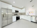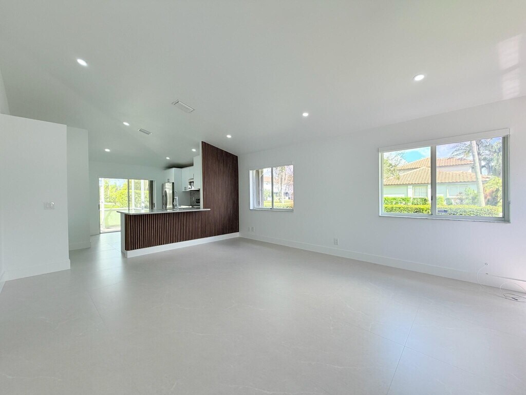 Fully renovated corner villa for rent in gated Malibu Bay,offering comfort,style,and resort amenities. Be the first to live in this nearly new one-story home featuring brand-new roof,fresh exterior paint,new HVAC,and accordion hurricane shutters. Inside is a redesigned kitchen with soft-close cabinets,marble countertops,stainless steel appliances,recessed lighting,new flooring,and a spacious primary suite with vaulted ceiling. Bathrooms are updated with modern stand-up showers,plus in-unit washer and dryer. A covered,screened patio overlooks a grassy common area,and two assigned parking spaces add convenience. The community offers pool,hot tub,fitness center and tennis,with association including fiber-optic internet,cable,and lawn care. HOA requires 650+ credit score. MLS ID R11166063